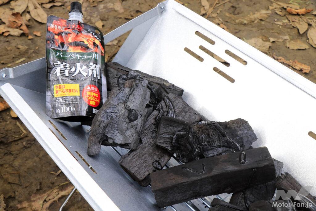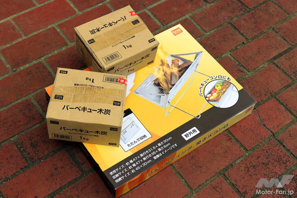 実はこのピザオーブンをガスのツーバーナーで「楽」して使おうと思っていた。ところが入手後、これは同メーカーの炭を使うBBQコンロのオプション品であったようだ。「あまり本来の使い方と違うことはすべきでない」そんな意見もあるので、急遽近くのホームセンターへ行く。なるべくお安く、携帯に便利そうな物を選び、木炭も購入。組んでみると、この組み合わせはコンパクトでぴったりサイズ。なかなかスタイリッシュなオーブンセットとなる。
