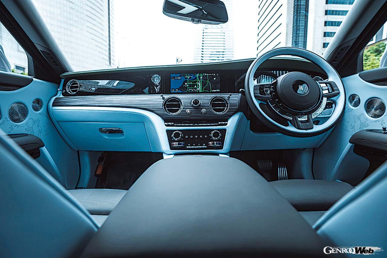 最初に触れたのは6.75リッターV型12気筒エンジンを搭載するゴーストIIだった。現在のゴーストは2020年に登場した2代目で、IIは昨年秋に発表されたマイナーチェンジ版。そのボディはファントムよりは低くコンパクトにまとめられているが、観音開きのドアを持ったボディはエクステンデッドということもあり伸びやかさが強調されている。