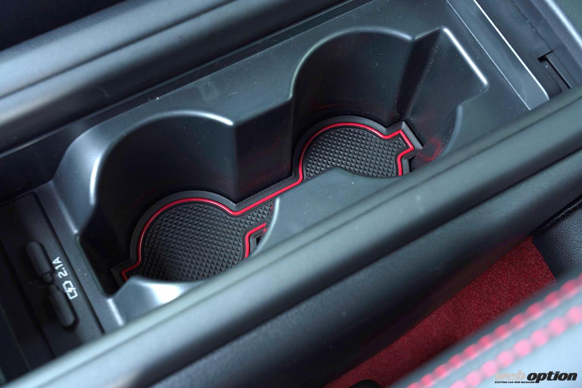 ホイールには、レッドラインのリムがアクセントとなるSTガレージオリジナルのウェッズスポーツSA99R RLCをインストール。サイズは18×7.5J+45(5万7200円/本)だ。