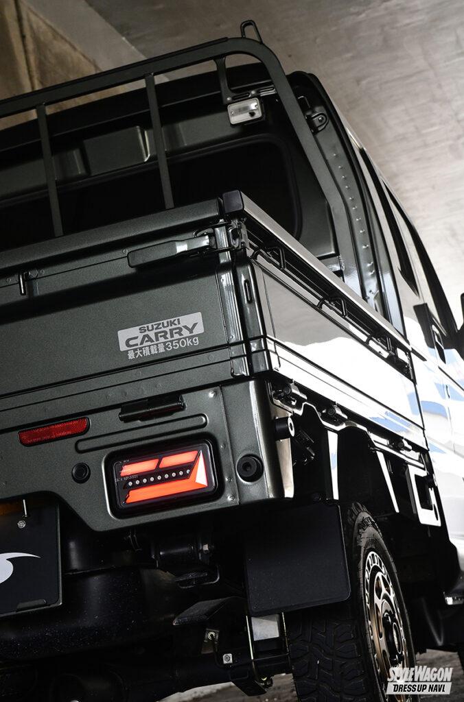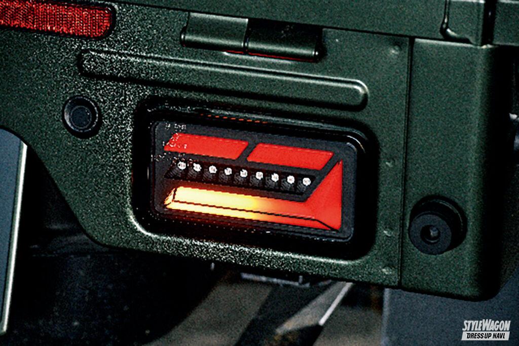 DA16Tキャリイに続き、現在開発が進められているのが、現行S500ハイゼットのLEDテールランプ。流れる光のシーケンシャル機能やカラーラインアップは踏襲されている。キャリイに比べ、テールランプそのものの面積が広いため、迫力あるリアビューとなる。