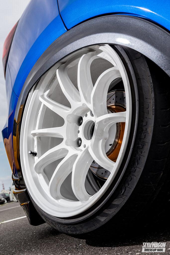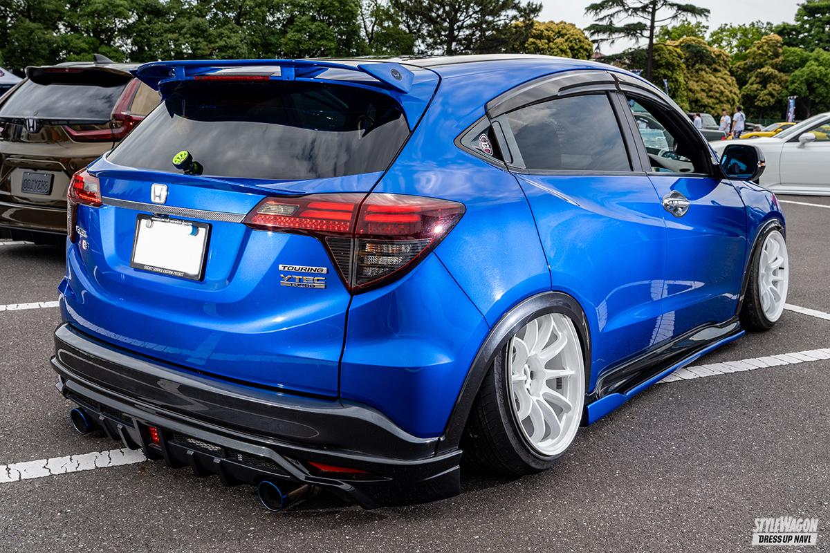 元々ハイブリッドのRU系ヴェゼルに乗っていたwhitesnake0711さんは、「ターボ車に乗りたかった」ことから当車に乗り換えた! その“乗り継いだ”痕跡はリアエアロにある。実はコレ、ハイブリッド用なのだ(つまり流用!)。白のワークエモーションを履いたのは、ターボ車=スポーツ系との着想から。SUBARUのスポーツ車をイメージ(!?)でもあり……。ホンダ車なのに面白い作り方だ!!