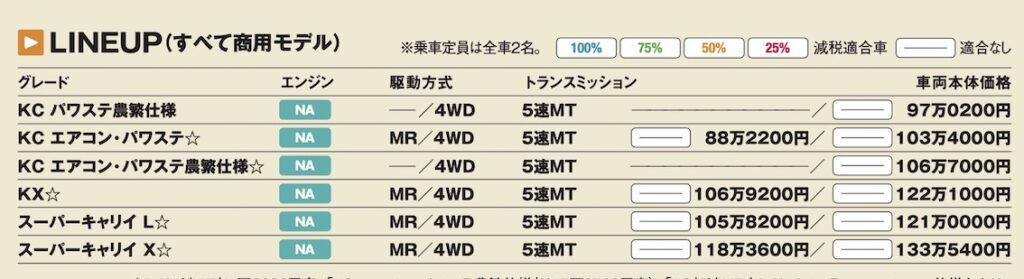 月間販売台数 4625台(22年7月〜12月平均値) 現行型発表 13年18(一部改良22年4月) WLTCモード燃費 18.2km/l ※「KX」、「KC」系の5速MT車