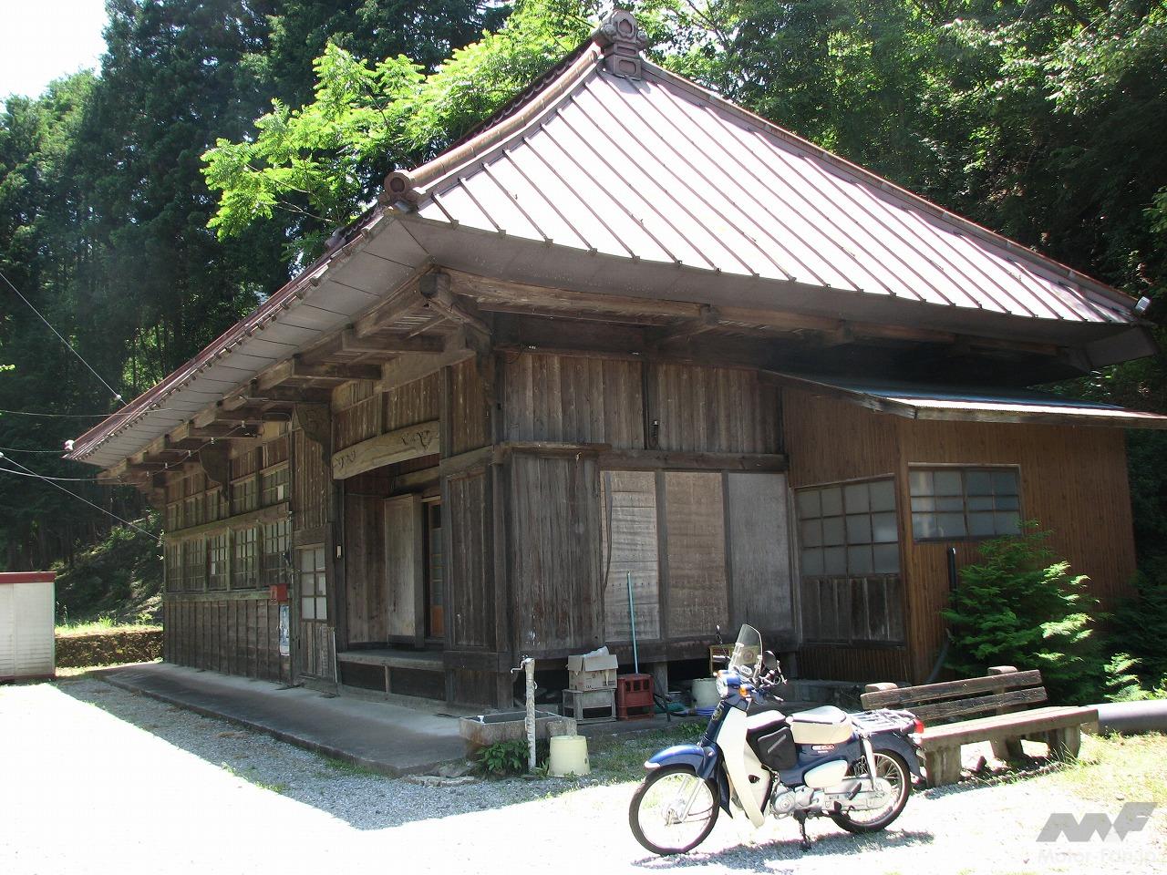 日本の原風景をのんびり堪能した後は、林道安寺沢線を進んでいきました。安寺沢川沿いに続く林道は狭いけれど舗装されていて、山間の集落をつないでいます。途中には江戸時代に幕府の命令で全国の村々に設けられた米や雑穀の倉庫である郷倉があったり、廃校になった桜井小学校安寺沢分教場などがあります。林道をさらに進み厳道峠を越えれば道志村へと行くことができます。しかし僕は途中で右に分かれる林道をたどりました。標高を上げていく粗末な舗装林道を走っていくと目の前にトラス橋が現れます。前後には巨大な筒が山を貫いています。「こんな山奥にいったいなんで?」とだれもが不思議に思うはずです。実はこれ、工事が進むリニア中央新幹線の軌道なのです。いまにもクマが出そうな山間に最新の鉄道が通されている状況を目の当たりにすると、別世界に入り込んだような錯覚に陥ります。