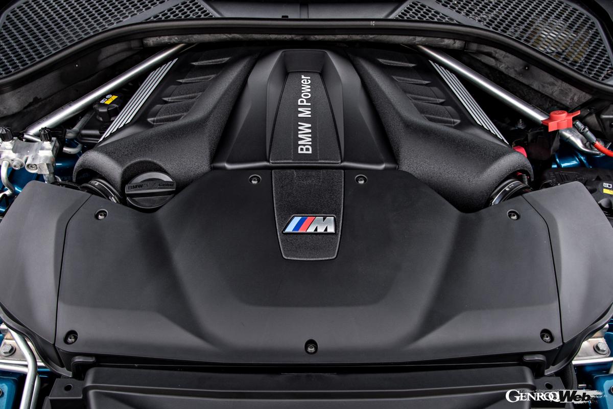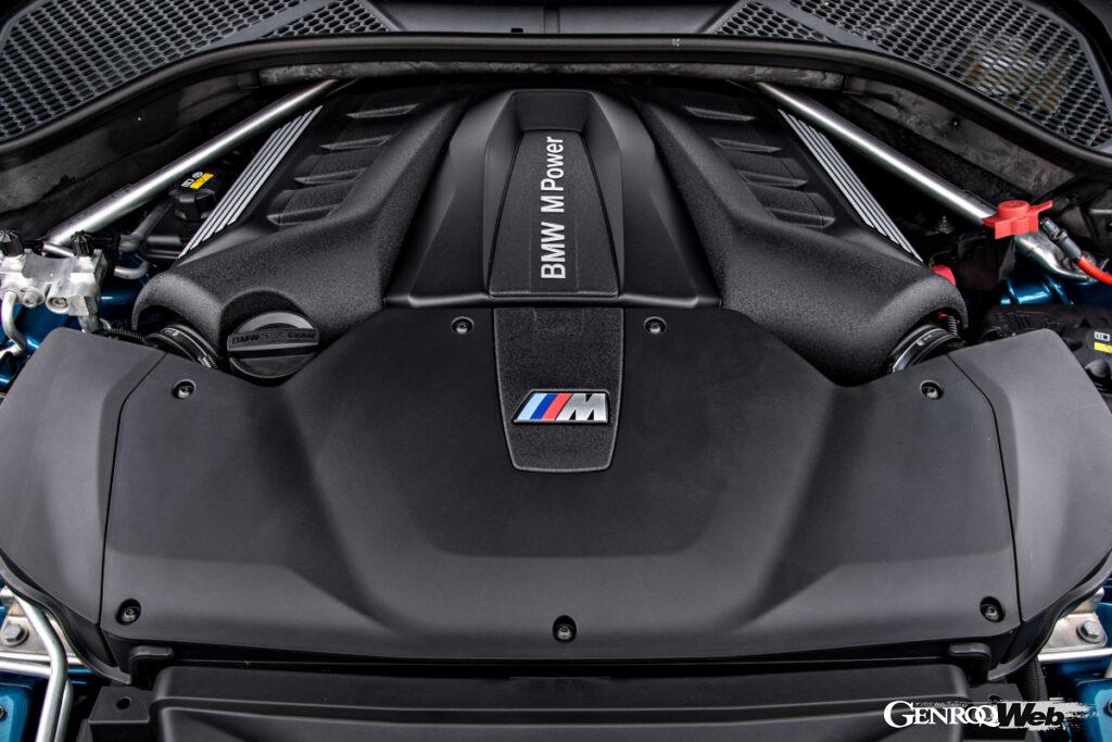 その最大の特徴は、BMW M社が製造する4395cc V型8気筒DOHCターボ “S63B44T2“ユニットを搭載することだ。これはM5やM6に搭載されていたMツインパワー(ツインスクロール)ターボとバルブトロニックを備えるV8ターボの改良版というべきもので、M5を上回る最高出力575PS/6000rpm、最大トルク750Nm/2200〜5000rpmを発生。それはまたBMWの4輪駆動モデルとしては史上最もパワフルなエンジンで、Mモデル初となる8速トルコンATを介して、X5 M、X6 Mともに車重2360kgの巨体ながら0-100km/h加速4.2秒という驚異的なパフォーマンスを実現していた。