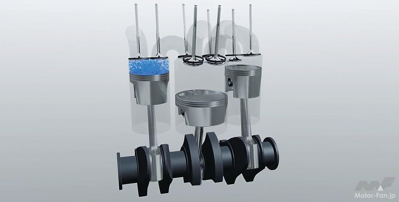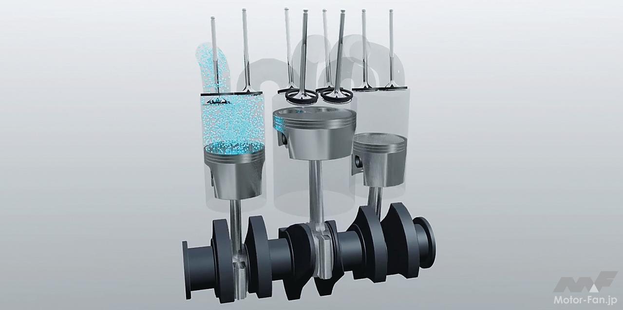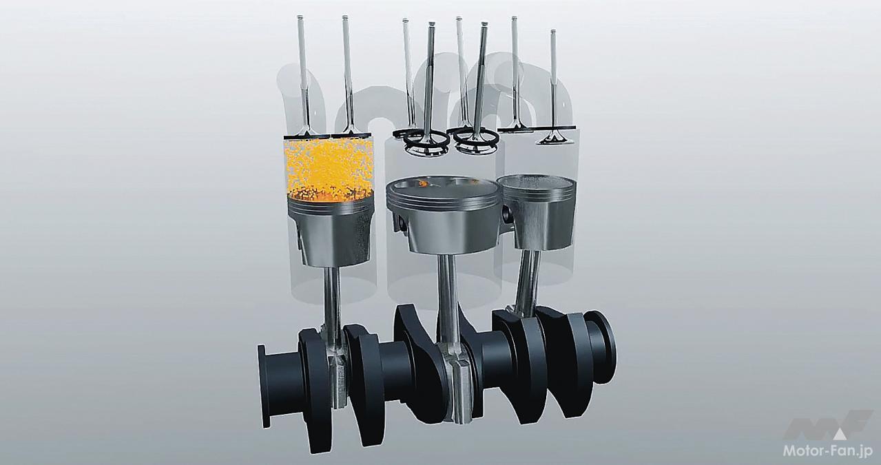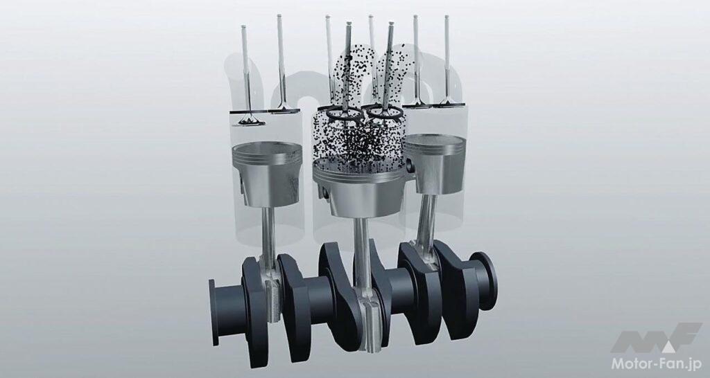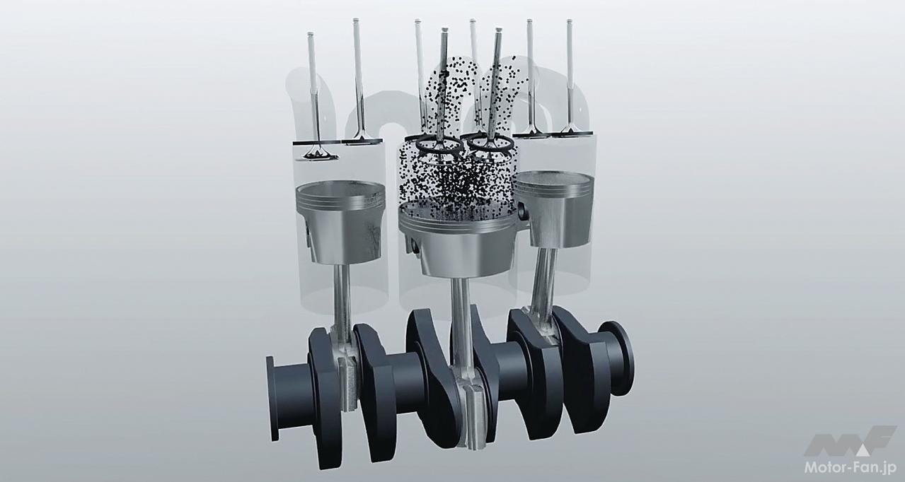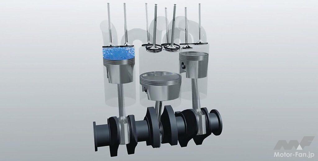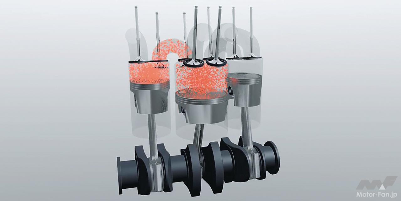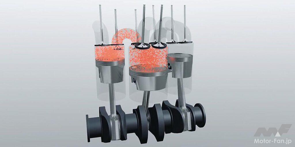 中間に挟まれる低圧側シリンダーは膨張と排気行程のみのため、圧縮比は低いものの、フリクションは当然ながら増えている。また、低圧側をのぞけば360度クランクの直列2気筒構造であり、自動車への搭載には騒音と振動対策が要されるだろう。