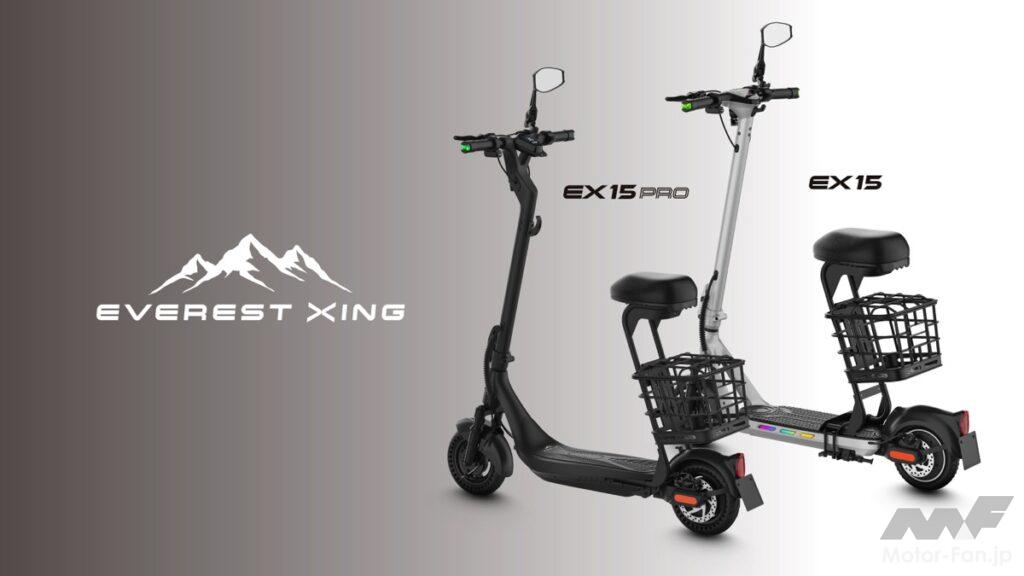 EX15 Pro/EX15は共に特定原付に分類される高スペック電動キックボード。600Wの定格モーター(最大出力は900~1,000W)に48V/15Ah(Pro)または37V/10.2Ahのバッテリーを搭載し、登坂能力27%以上、航続距離30~50kmを実現。10インチまたは8.5インチのノーパンクタイヤに前後サスペンション、LED灯火類、IPX5防水構造、ディスク+ドラムブレーキなど、出力性能・快適性・安全装備が高水準に保たれている 。