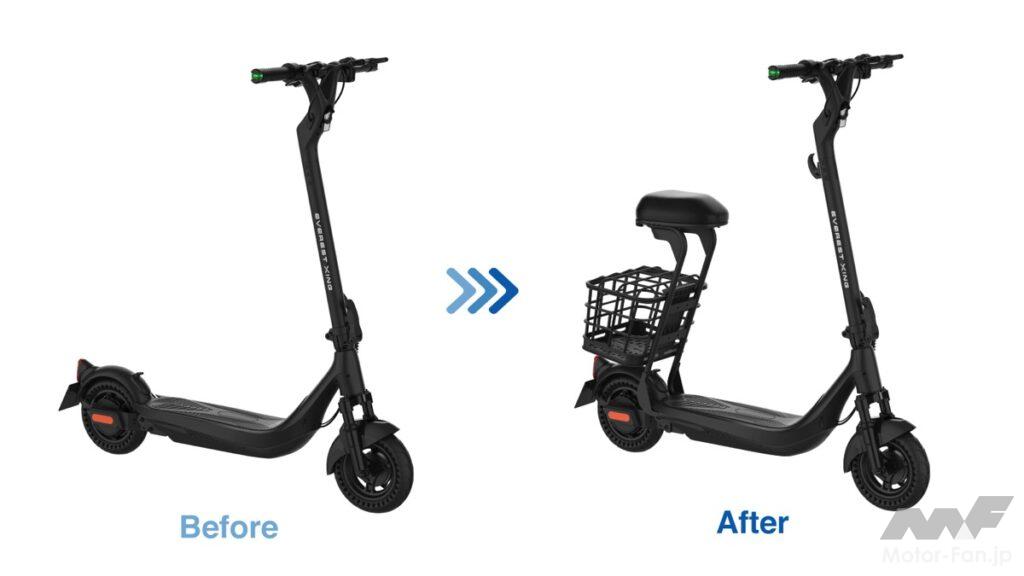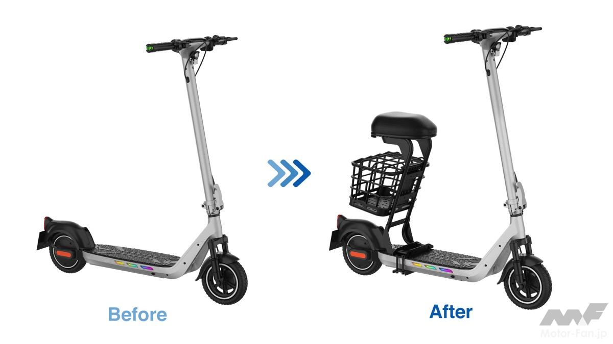 これまでは立ち乗りスタイルのキックボードが主流だったが、高齢者や買い物需要、走行の安定性を求めるユーザー層が存在する現実に応えた形での導入となる。600Wモーター搭載の高出力EX15/EX15 Proに装着することで、都市部や過疎地の「ちょい乗り」をより安心・快適にする狙いが明確に打ち出されている。