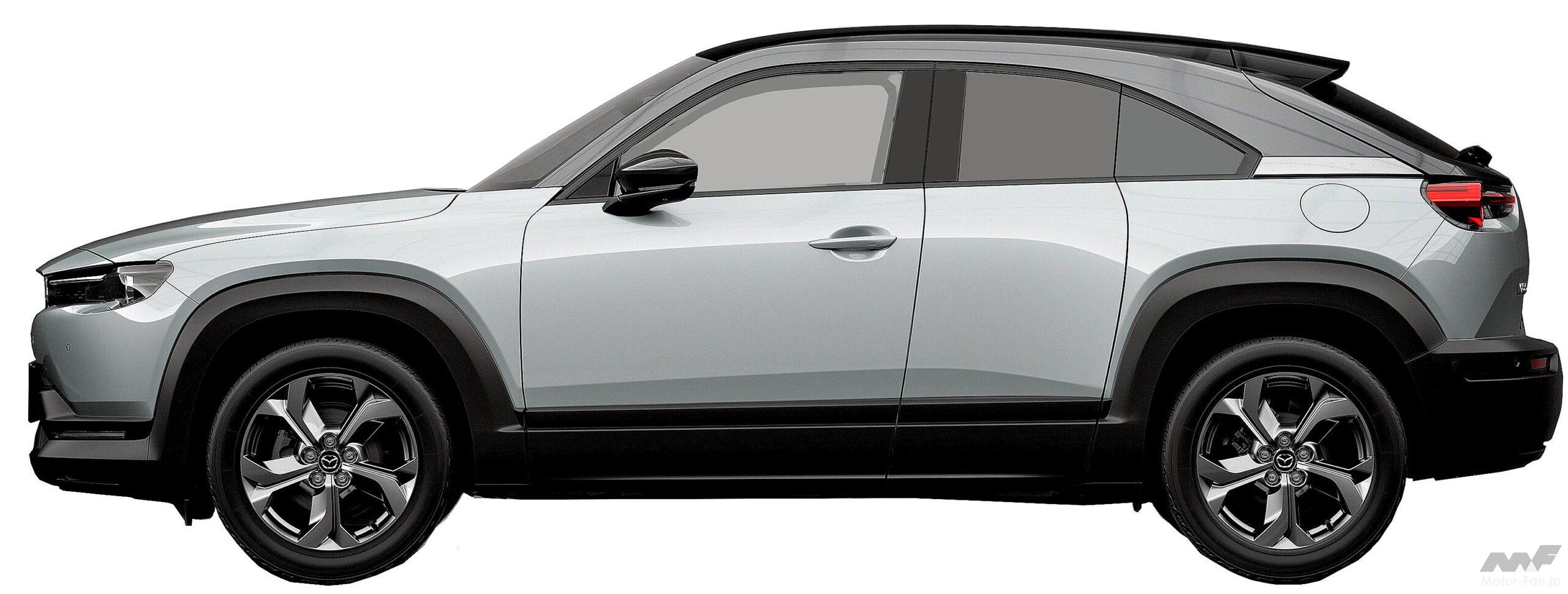MX-30は408との比較においては全長で-305mm、全幅で-55mm、全高で+50mmと全長こそ最も短いものの、サイズ的には前掲のアウディQ3 SBあたりと同じようなところにある。しかしながら荷室容量は408の536ℓに対し400ℓと、いささか苦しい。デザインや電動化への目くばせという点では408と同時代的なところにあるが、やはりサイズ的にはいわゆるCセグメント車。結論を言えば408より「ちょっと下」と言わざるを得ない。
