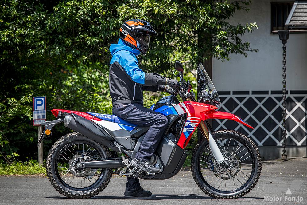 ずっと気になっていたホンダ「CRF250ラリー」。高速道路のサービスエリアやツーリング先の休憩スポットで、荷物を積んだ旅仕様の「CRF250ラリー」を頻繁に見かけていたからだ。小排気量アドベンチャーモデルが各メーカーからラインナップされているが、そのなかにあってラリースプリンターとしての圧倒的な“本物感”があり、だからオフロードブーツを履いたオフ仕様のライダーが乗っても似合う。それでありながら、デニムにスニーカーといったカジュアルなスタイルもサラッと受けれ、オンロード中心のツーリングバイク的に愛用しているライダーも見かける。本格志向でありながら、幅広い指向のライダーを受け入れる懐の深さと、それを受け入れてもビクともしない芯の強さを感じていた。単なる、250オフロードバイクベースのバリエーションモデルではないな、と。