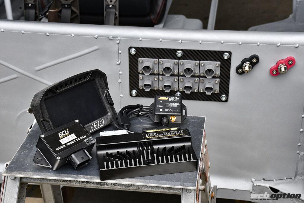 エンジンマネージメントはECUマスターという海外製のフルコンを採用。なお、ノイズの原因になりやすい点火系の配線は、他の信号線と極力交わらないように配慮するなど、細部にまで気を配りながらメイキングを進めているそうだ。