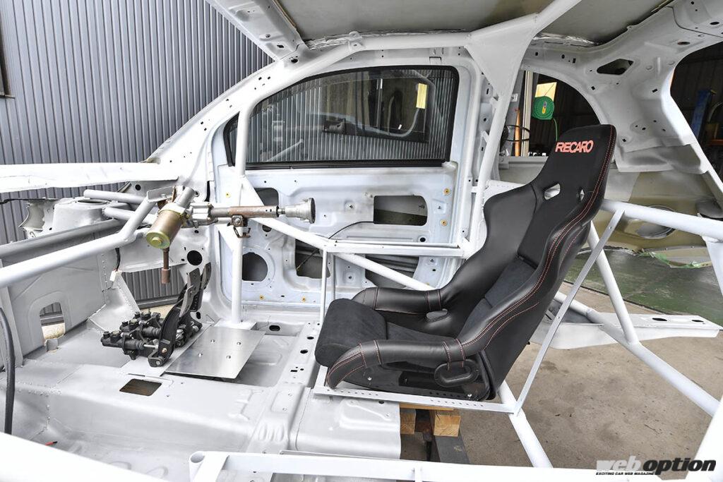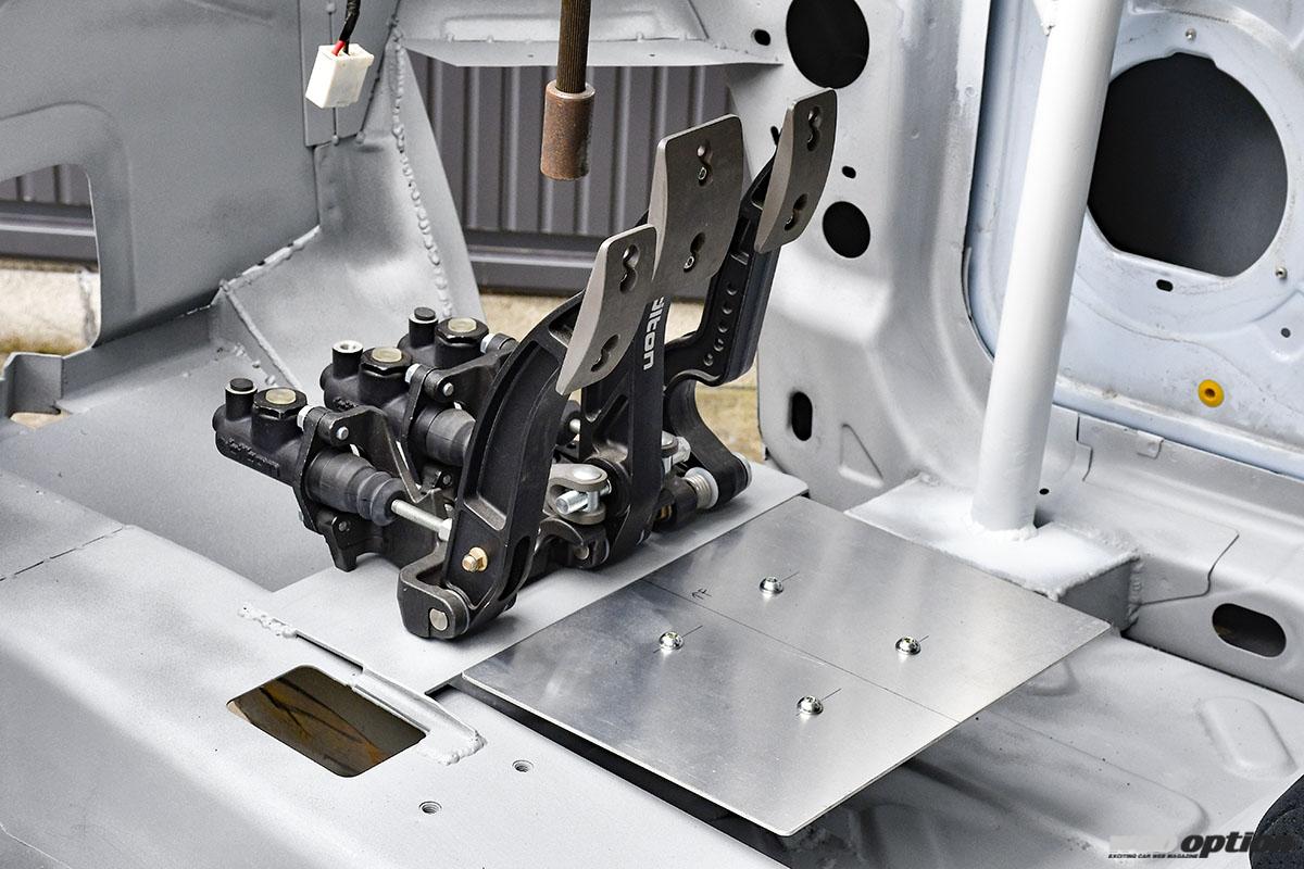 シートポジションはかなり後方&センター側にオフセットされ、それに合わせてステアリングシャフトは延長、ブレーキペダルもチルトンのオルガン式に変更される。
