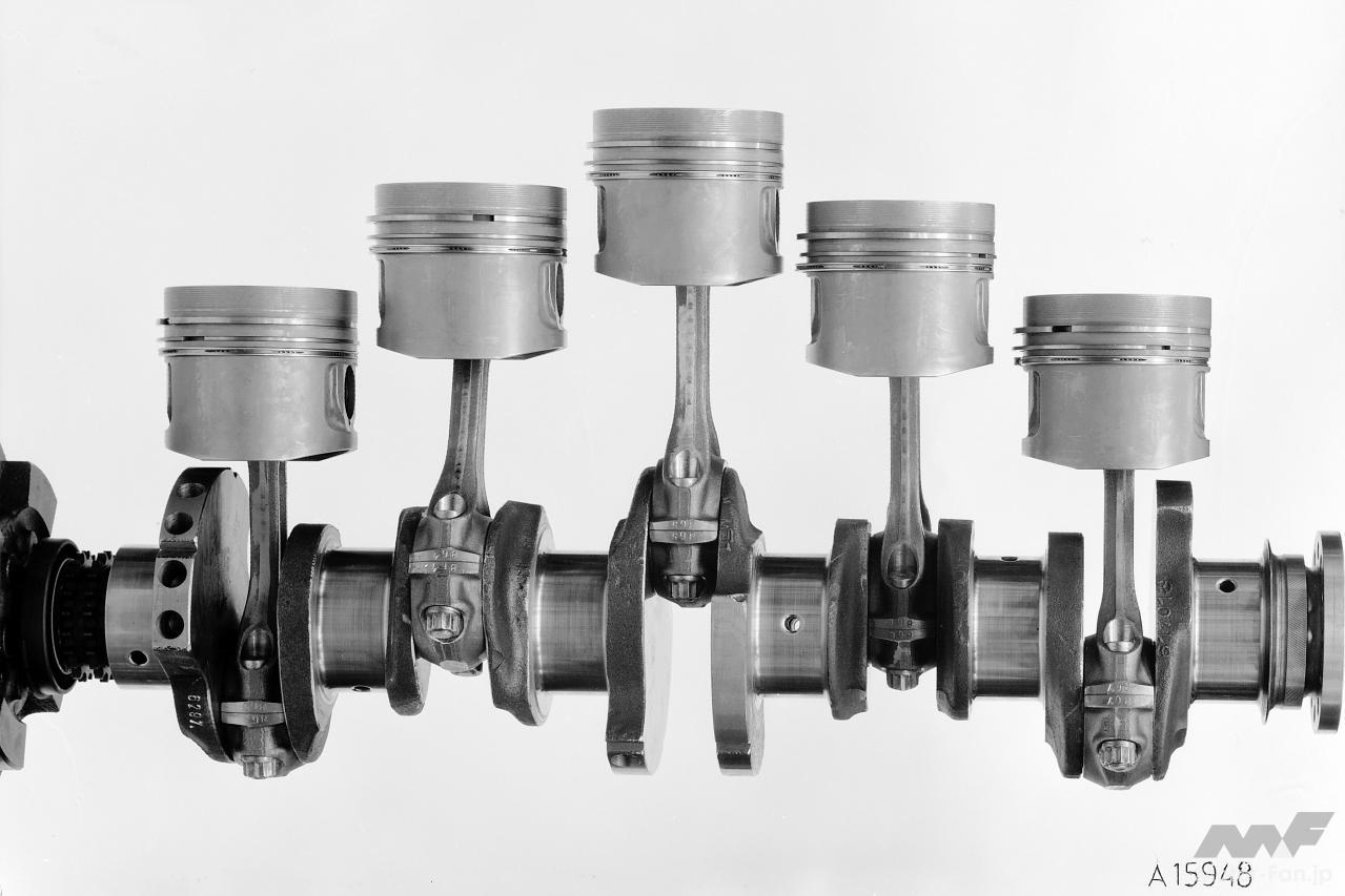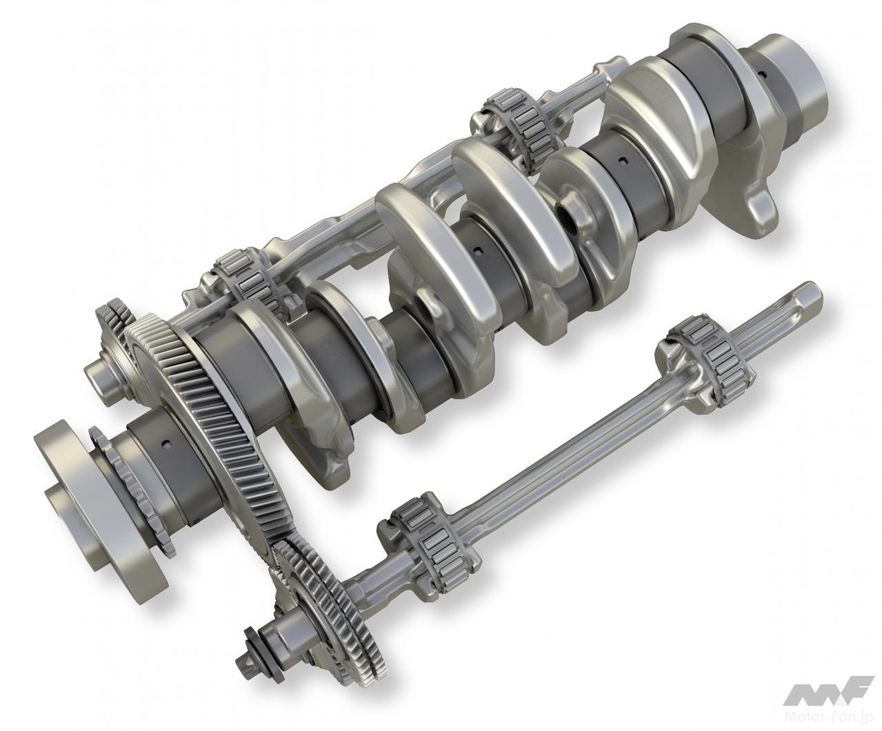 上の写真はBMWのV型8気筒DE用シリンダーブロック(アルミ製)。リブの数、サイズなど、ガソリン用ブロックとは一線を画す。また、高圧に耐えるピストンやコンロッドは質量が大きいので往復慣性力も大きくなることへの対策、つまり振動対策が必要で、これも重量増とコストアップの要因となりがち。写真下はBMWの4気筒DEに採用されたバランサーシャフトだ。