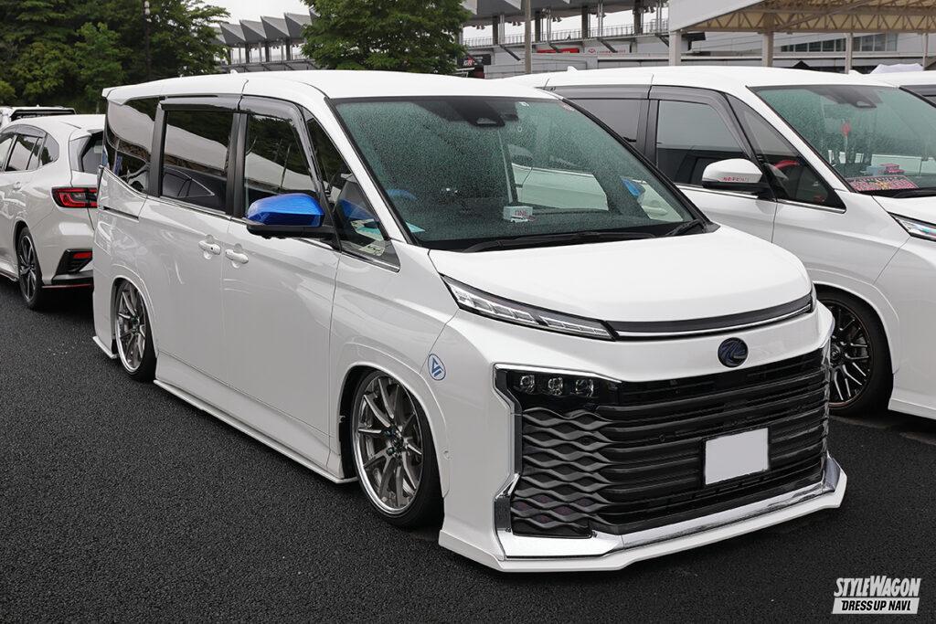 小ぶりのクールのエアロを筆頭に、シンプル路線でまとめられた90ヴォクシー。シンプルなんだけど、グラインダータトゥのドアミラーカバー等々、オーナー曰く「チョイチョイ人と違う」部分を加えている。ホイールも、本来90には履けない数値のセットだが、フェンダーを追加することで装着が可能になったそう。御覧の通りフェンダーも小ぶりだが、コレが大きな“差”になるワケだ。
