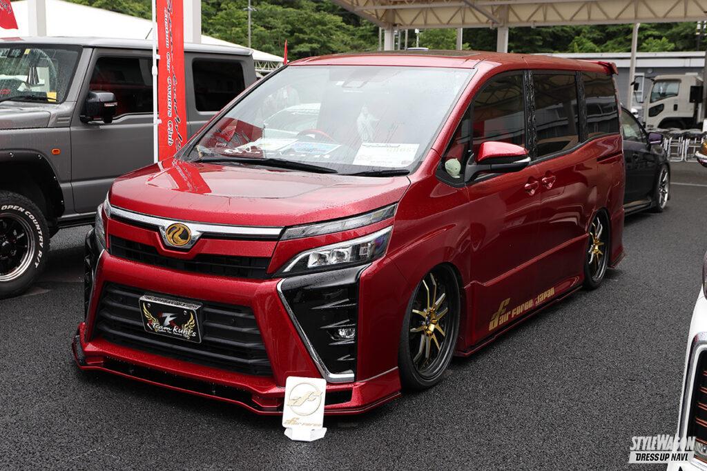 真っ赤なボディ色に、グラインダータトゥ、エングレービングといったカスタムペイントなどで、インパクト抜群の80ヴォクシー。元々クールのデモカーだったものを購入して自分仕様にバージョンアップしている。オーナーのお気に入りはリアまわりで、前述のカスタムペイントがハッキリわかりやすくなっている。シートも赤のスポーツシートを奢るなど、“赤”を象徴的に魅せている1台だ。