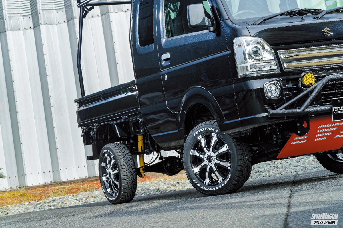 華やかなUSカスタム要素を取り入れた大口径ブランド、マーテル。そのヨンク&SUV系シリーズとして展開されるマーテルギア=MGは、アメリカンだから都会でも映えて、ワイルドだからオフシーンでも存在が際立つのが魅力。そんなシリーズを代表するモデルであるビーストには、軽トラ&軽カー専用サイズとなるビーストKカーが設定されている。