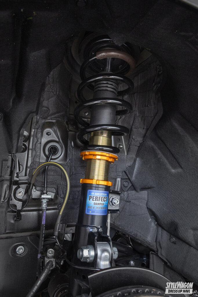 2014年の20系アルファード/ヴェルファイア用の発売から10年余り。現在まで一貫して快適な乗り心地を追究し続けて来た人気の車高調が、アクシススタイリングのパーフェクトダンパー。“純正が必ずしも最良とは限らない”という視点に立ち、車種単位ではなく搭載エンジンやグレードごとに仕様を細かく設定。40系用では車重が最も重いエグゼクティブラウンジE-FOURを開発デモカー第1号として導入。あえて厳しい条件と向き合いつつ、そこで鍛え上げられた技術をその他のグレードへとフィードバックさせている。