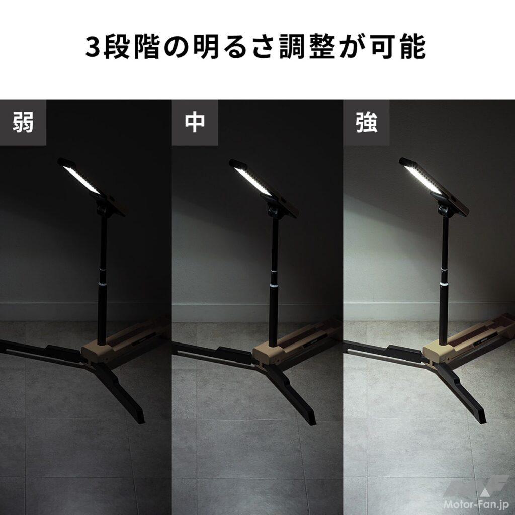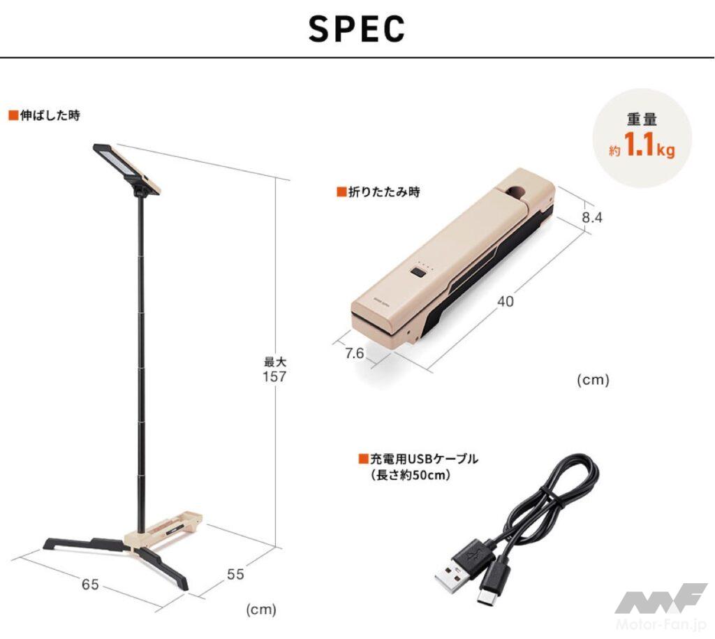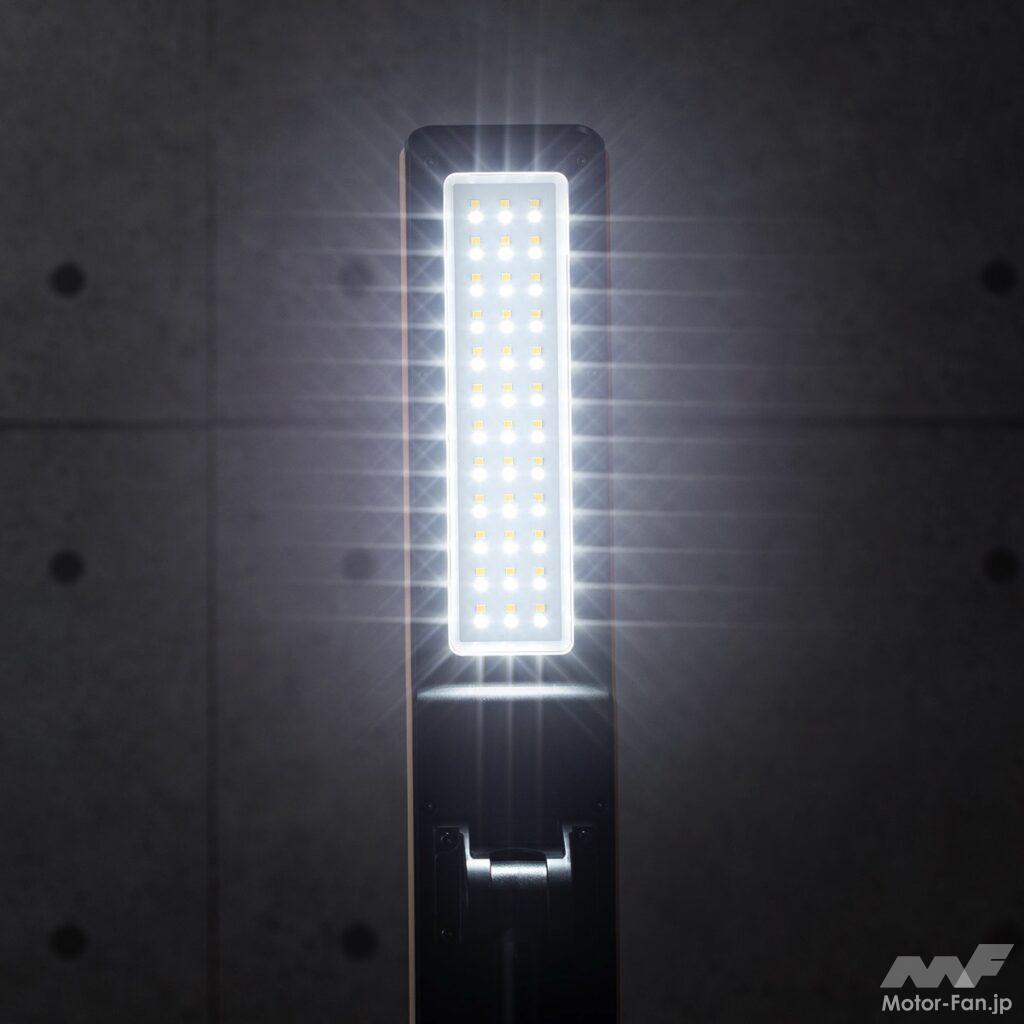 このLEDライトの大きな特徴は、折りたたんでコンパクトに収納できる設計にある。使用後は幅40cm以下にまで折り畳むことができ、重量も約1.1kgと軽量なため、車に積み込んでおく常備品としても、バッグに入れて携行する装備としても最適だ。設置や撤収の手間が少なく、必要な場所に即座に持ち運べる機動性が確保されている。