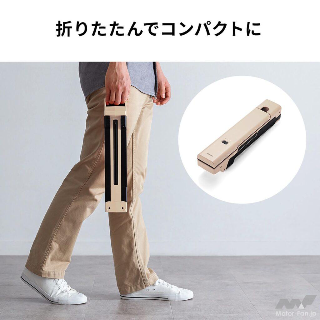 取り外し・持ち運びが容易な折りたたみ構造と長時間駆動