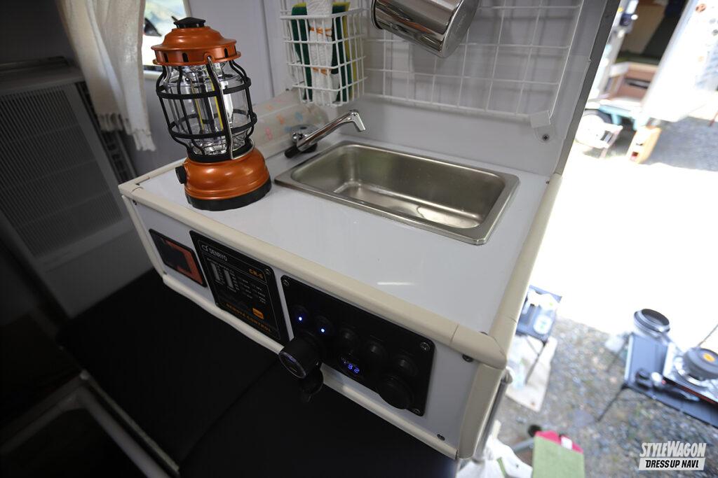 キャンピングカーのリノベーション技術をフル投入し、独自に内装の和風モダン仕立てに着手したサンバートラック。しかも車中泊仕様だけでなく、即席の立呑みBARを開設できるユニークな仕掛けも!