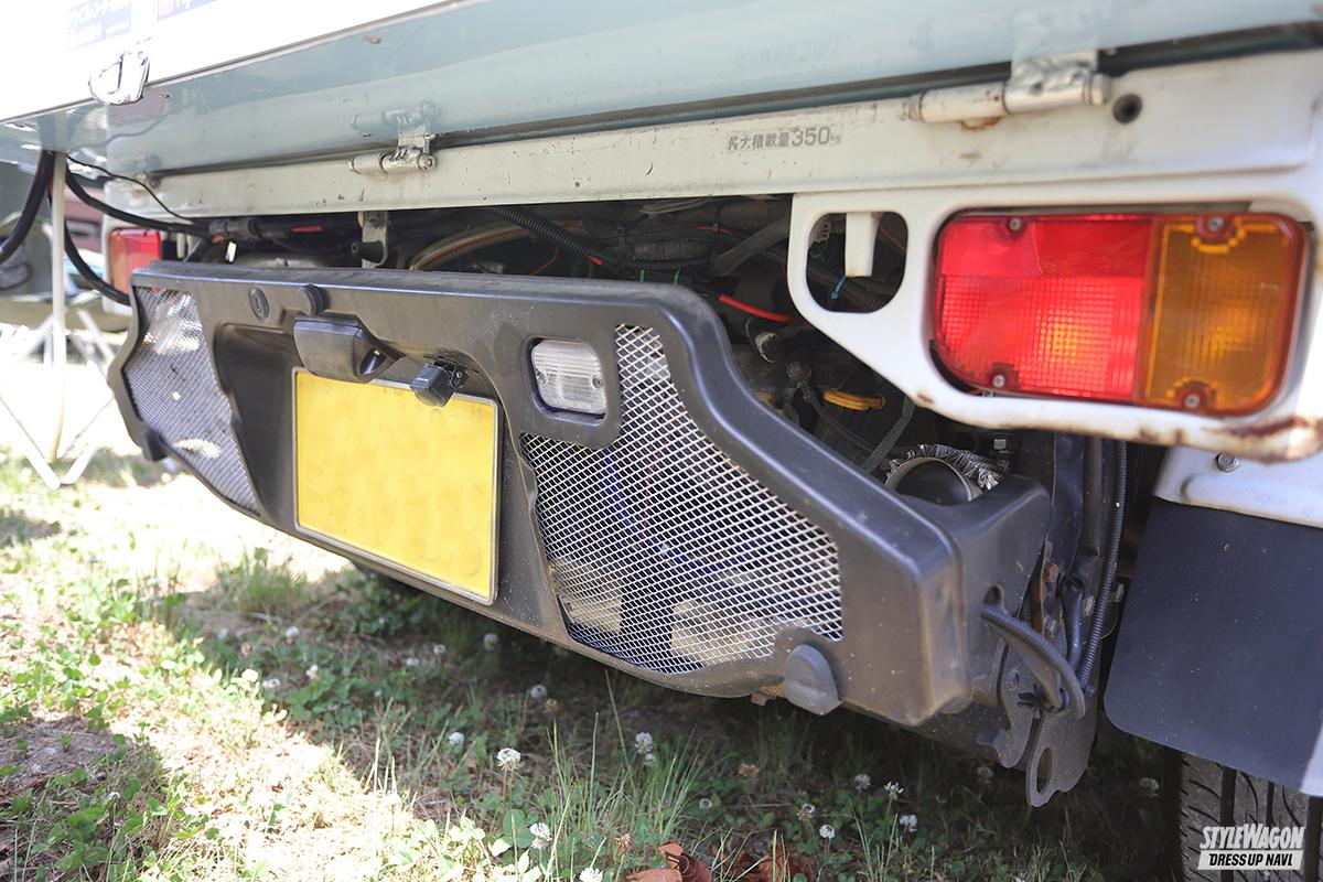 四気筒でスーパーチャージャー設定があり、走りも楽しめるサンバートラックを選んだポンちゃん。現状は純正の足に組み直しているが、「以前は上に載せたシェルの高さを稼ぐために、車高調に換えてローダウンしていましたが腰痛の悪化でやめました」。アルミ製シェルやエアコンなど車重があるため、ブレーキをプレオのスーパーチャージャーに備えていたモノを移植し強化。また、夏場を乗り切るためにサブラジエターやインプレッサ用オイルクーラーなどを備えてRR対策もバッチリ。