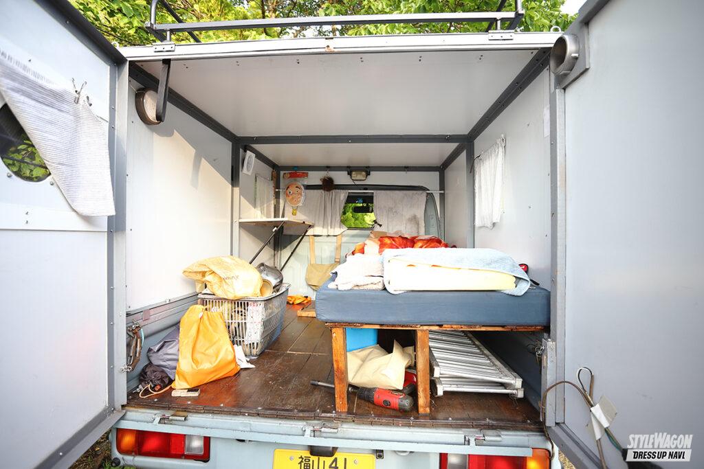 コレホントに軽トラの荷台? バイクも載る自作ウッドの室内