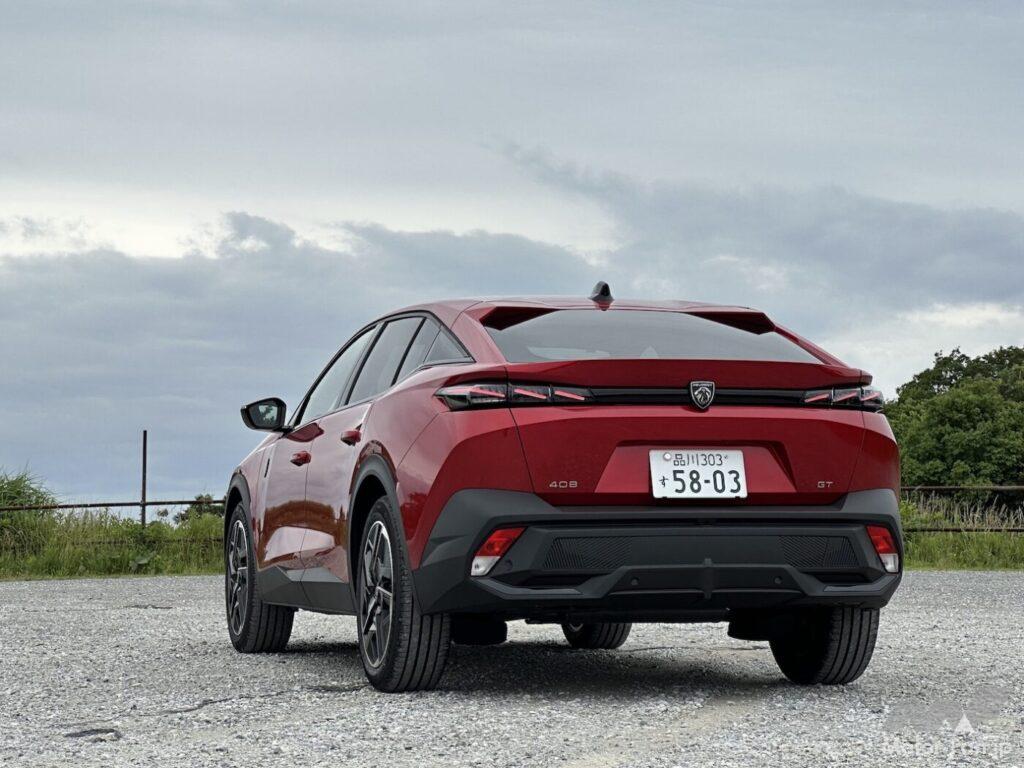 プジョー408GT 全長×全幅×全高:4700mm×1850mm×1500mm ホイールベース:2790mm 車重:1430kg サスペンション:Fマクファーソンストラット式 Rトーションビーム式 駆動方式:前輪駆動 エンジン形式:直列3筒DOHC直噴ターボ 型式:PureTech1.2 排気量:1199cc ボア×ストローク:75.0×90.5mm 圧縮比:10.5 最高出力:130ps(96kW)/5500rpm 最大トルク:230Nm/1750rpm 燃料:プレミアム 燃料タンク:52L 燃費 WLTCモード燃費:16.7km /L 市街地モード13.2km/L 郊外モード16.4km/L 高速道路モード19.1km/L 最小回転半径:5.6m 車両本体価格:499万円