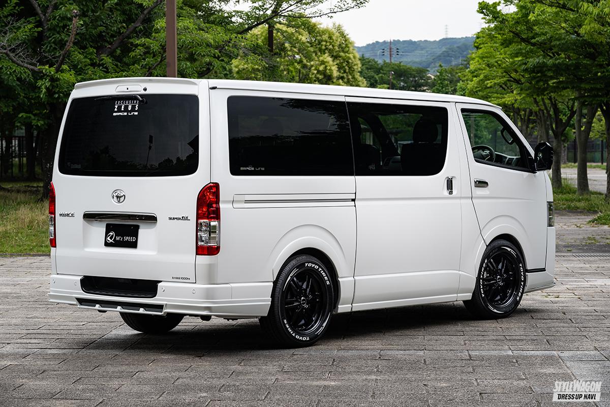 日本を代表する商用車として、あらゆるジャンルで大活躍のハイエース。ドレスアップからキャンパー仕様などなど、カスタマイズの世界においても、スタイルを問わず絶大な人気を獲得している。そんなハイエースに向け、エクスクルーシブゼウスが新たなボディキット、グレースラインVer2を完成させた。