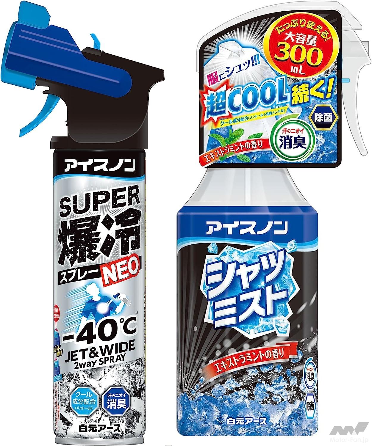 車内の温度上昇を抑制するグッズではないが、冷却スプレーを使えば、車内全体やシートに噴きかけるだけで車内の温度を急激に下げることができる。