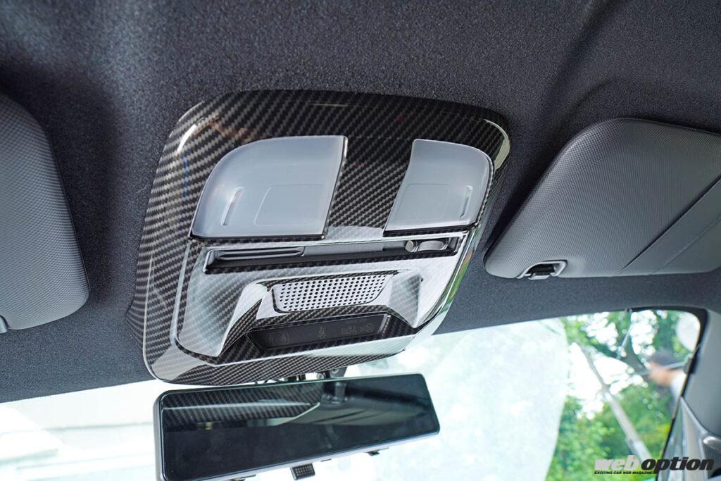 天井部分のルームランプユニット(8800円)には、ABS素材のカーボン調ルームランプカバーを用意する。