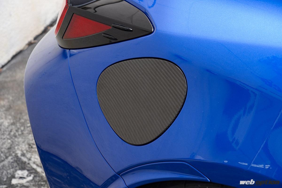 ドライカーボン製の給油口カバー(1万6500円)も、貼るだけのイージー取り付けが嬉しい。こちらもクリア塗装仕上げ。