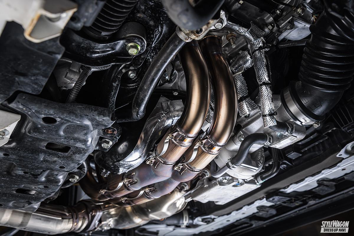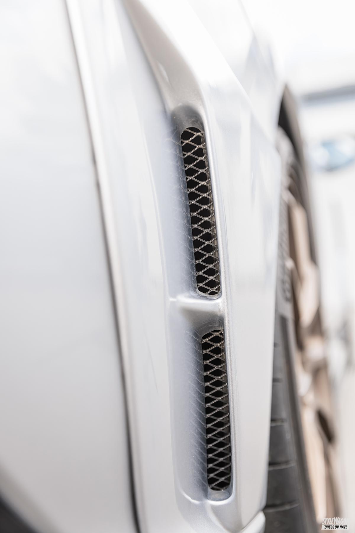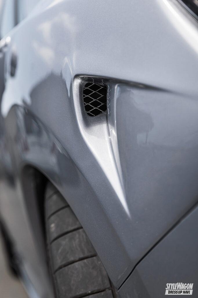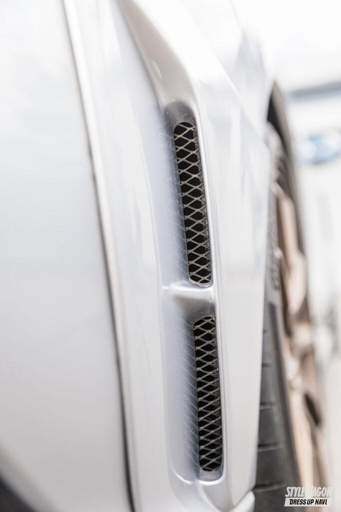 クルマを気持ちよく走らせるためには、できる限り抵抗をなくし空気の流れを良くするというのは、シムスのインテークやマフラーなどにも共通する考え方。そんな長年のノウハウを注いで計算されたダクトを搭載したフェンダーは、熱がこもりやすいエンジンルームからの流れも考慮されている。もちろん、デモカーを一目見て分かる通り、スタイリングもかなりアグレッシブに演出可能。スポーツツアラーをコンセプトに持つレヴォーグのフォルムを底上げしてくれる。