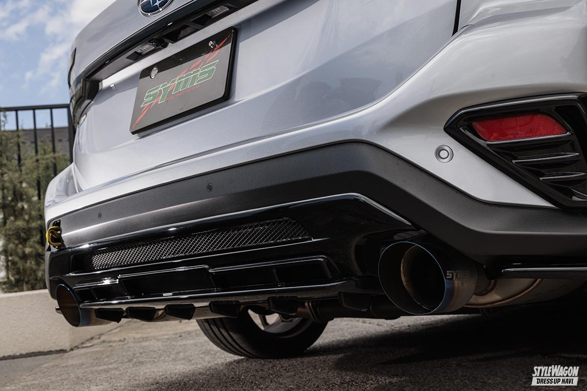 そんなフロントフェンダーにあわせて、リアのバンパーサイドにセットアップできるダクトやリアバンパー中央のセンターダクトも設定。ルーフエンドに取り付けるウイングもプラスして、レヴォーグの空力性能をグレードアップできる。見た目のスポーティさアップとシムスの考える空力性能の向上で、ワンランク上のレヴォーグライフを楽しめる。