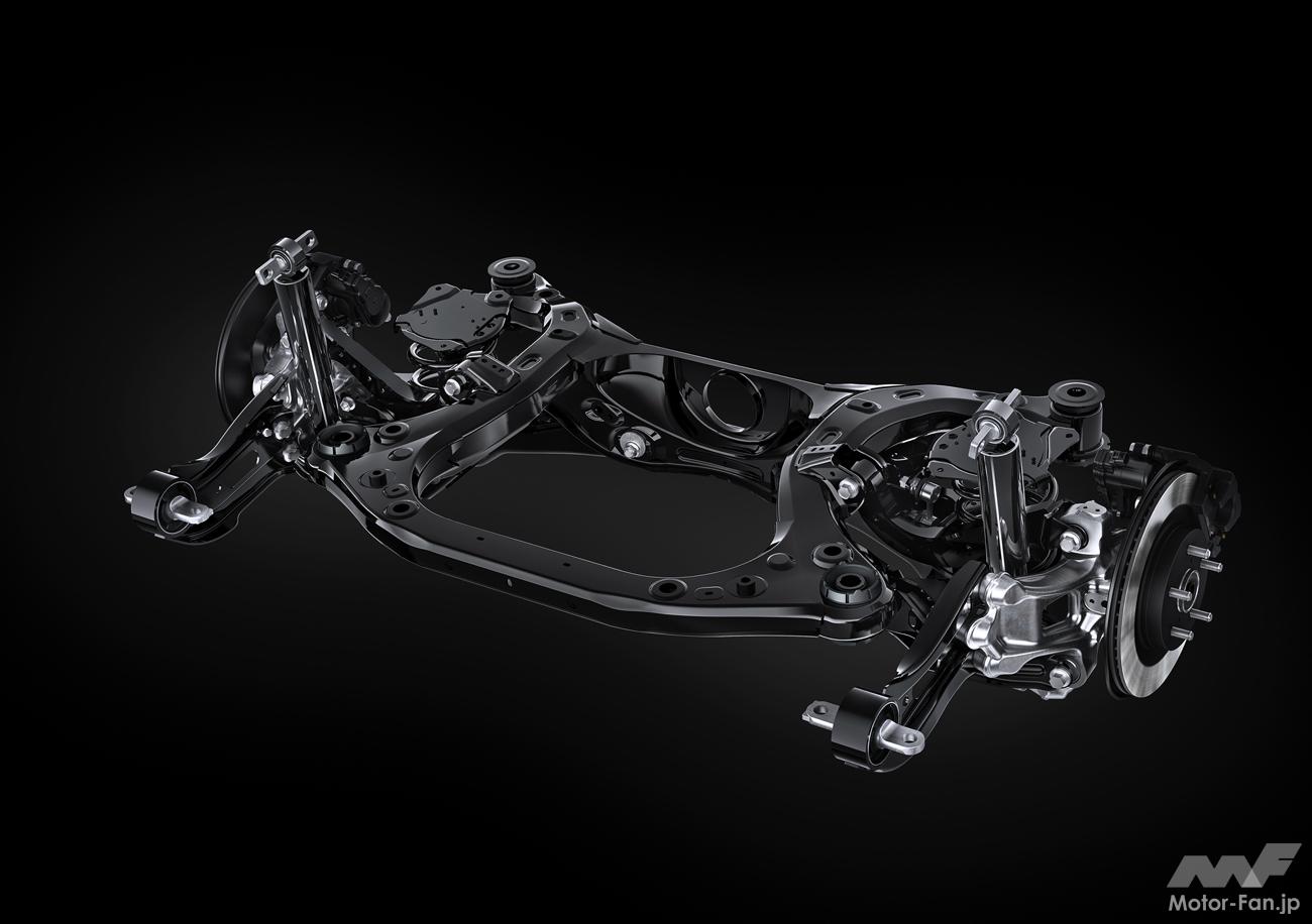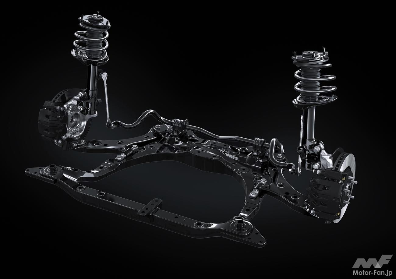 アルファード/ヴェルファイアのサスペンションはフロントがマクファーソンストラット、リヤがダブルウィッシュボーンで、ヴェルファイアには専用セッティングが施される。