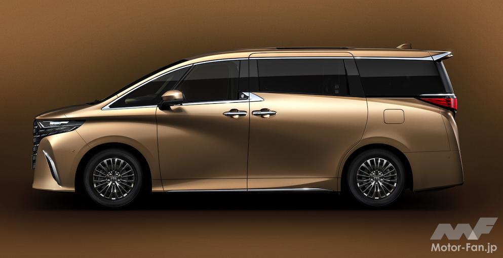 また、サイドビューもアルファード/ヴェルファイアはこれまでの通称“アルヴェルピラー”を昇華したBピラー加飾が特徴になっているが、LMはRXのようなウインドウ後端を絞り込んだ処理となっている。