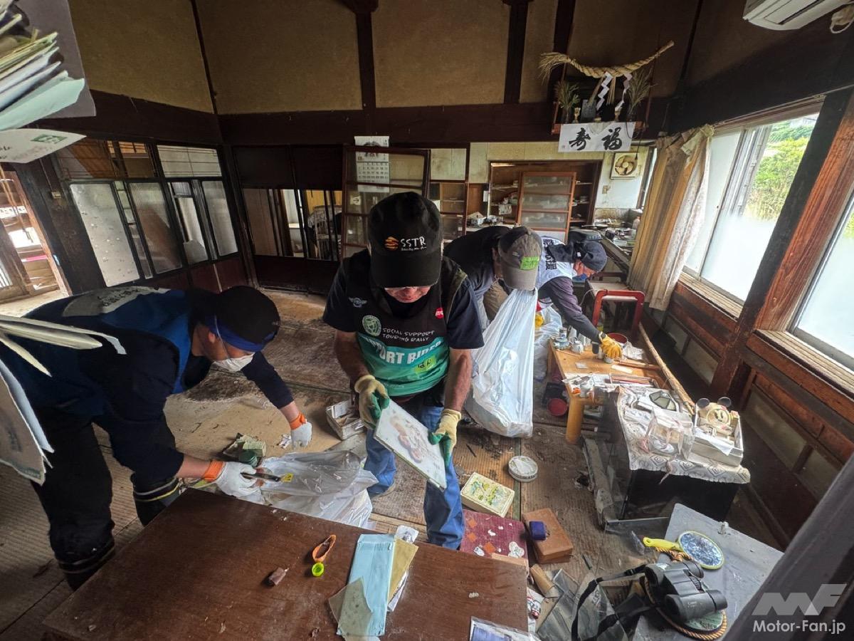 今回ライダーたちが作業を行ったのは、昨年9月の豪雨による土砂崩れで甚大な被害を受けた個人宅。家屋に大きな損壊はなかったが、1階部分は乾いた泥に埋もれ、家財の搬出が困難な状態だった。参加ライダーたちは、泥にまみれた家具や家財を一つ一つ丁寧に運び出し、分別しながら軽トラックで災害ゴミ集積場まで何度も往復。チームワーク抜群の作業により、当初数日かかると見込まれた作業をわずか1日で完了させた。バイクで鍛えた行動力と連携は、こうした現場でも遺憾なく発揮されている。