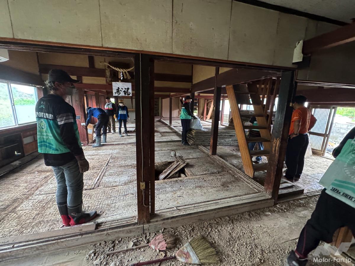 泥に埋もれた家財を搬出、ライダーならではの機動力とチームワーク