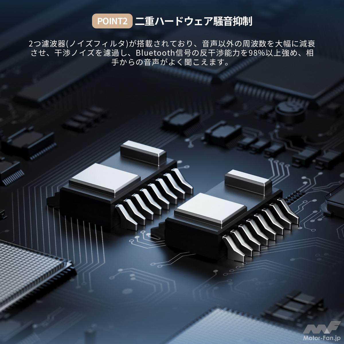 さらにBluetooth 5.2をダブルで搭載することで、ナビ音声や音楽再生と通話を同時に楽しめるマルチポイント接続を実現。障害物や電波干渉に強い仕様により、街中や山道、トンネルを抜ける場面でも安定した通信を維持する。