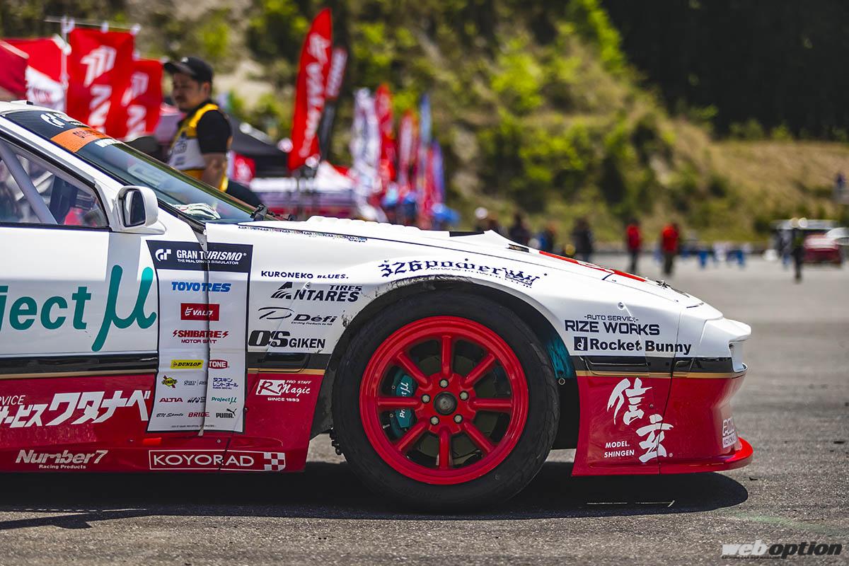 続けて「『ドリフトしやすいクルマなのか』ともよく聞かれますけど、正直、他のクルマに乗ったことがないから分からんのです(笑) 確かにホイールベースはシルビアと比べても短い(S15:2525mm、FC3S:2430mm)し、ハチロクと比べても25mmしか変わらない。だから深い角度を付けたときに耐えにくい苦労はあるけど、ちっちゃいクルマは取り回しやすいし、キビキビ動いてくれるのが好き。最初にドリフトを覚えたのもハチロクだったから、そこにルーツがあるのかもしれないです。それでFC3Sに乗り替えた時は、このクルマ乗りやすいな…っていうのが第一印象でしたよ」。