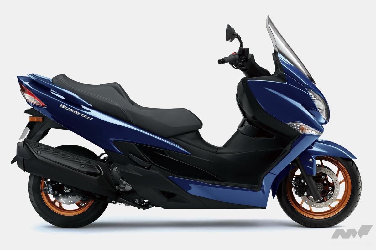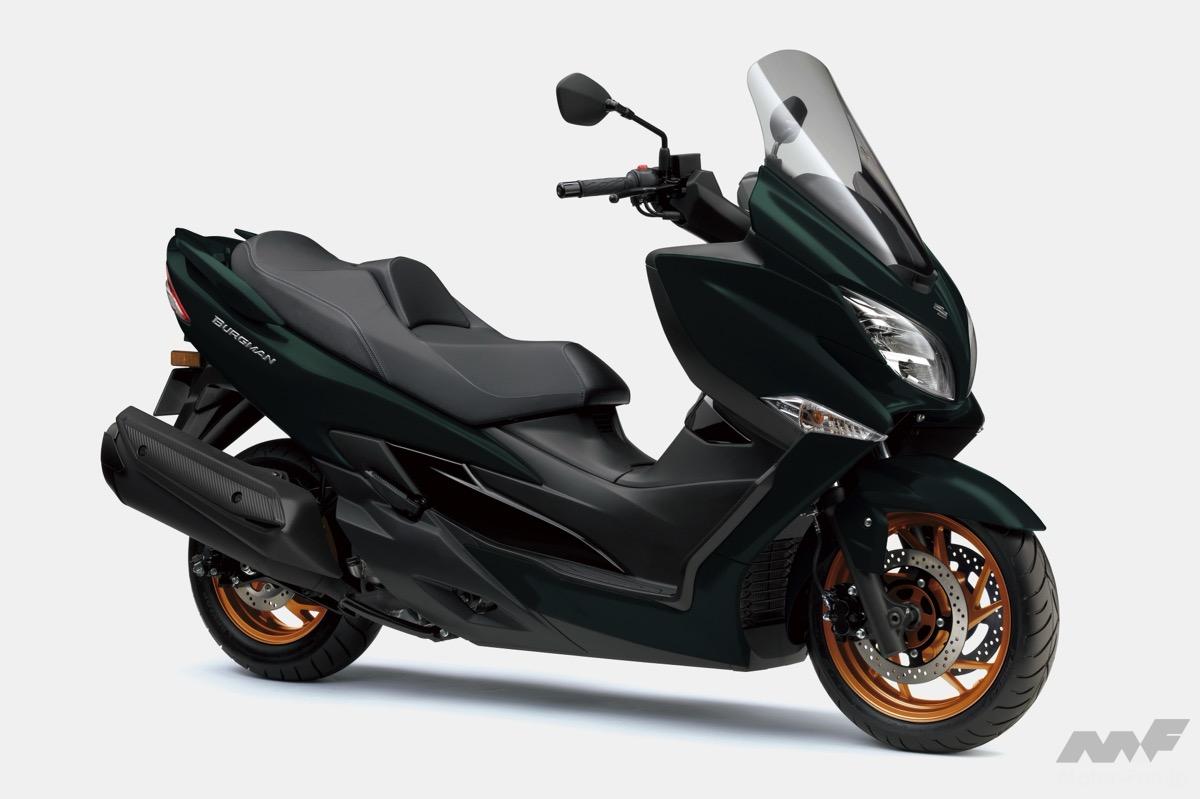 スズキは、400ccラグジュアリースクーター「バーグマン400 ABS」のカラーリングを刷新し、2025年7月18日より発売すると発表した。併せて、4ストロークモトクロッサー「RM-Z250」「RM-Z450」の2026年モデルも発表し、12月23日から発売を開始する。