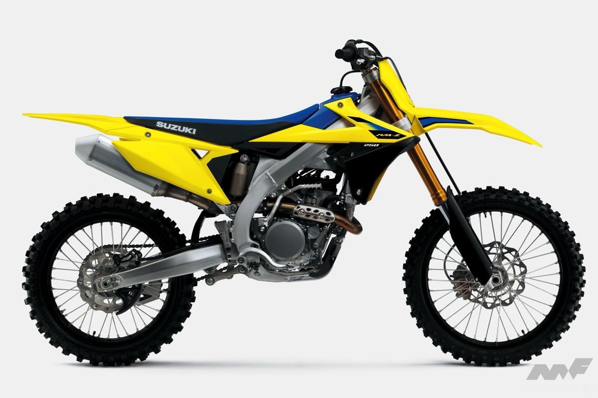 さらにRM-Z450は、449ccエンジンに大径エアフィルターと直線構造アウトレットチューブを組み合わせ、吸気効率を向上。アルミ製フレームとスイングアームによりコーナリング性能を磨き、SHOWA製BFRCリヤサスペンションを備えた本格仕様だ。こちらもS-HACを装備し、発売はRM-Z250と同じ12月23日、税込1,010,900円となる。