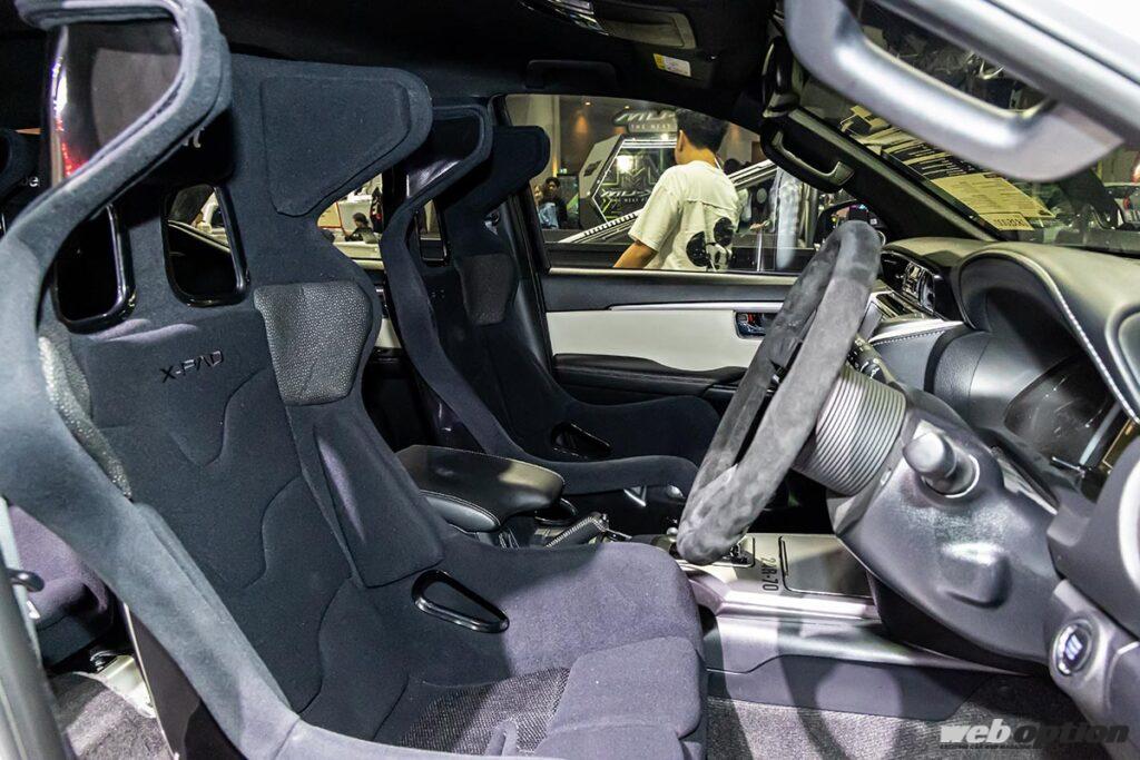 フロントグリルにインタークーラーが装着されていたが、現状ではエンジンは未搭載。今後の予定も検討中という話だったが、タイらしくハイパワーエンジンを搭載すればかなり話題になりそうだ。