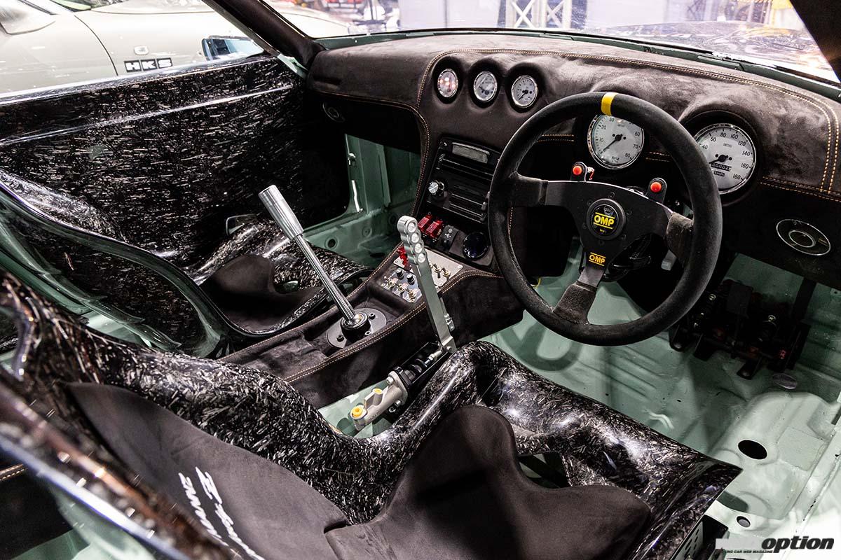 タイでもジャパニーズ旧車の人気は上昇中。そんな中でも目立っていたのが、数々のワイドボディキットを手掛け、カーボンワークに定評のあるKevMannzが製作したダットサン240Zだ。とにかく目を引くボディキットは、全てフォージドカーボン製で、ワイド幅はフロント4.5インチ、リヤ6インチとなっている。
