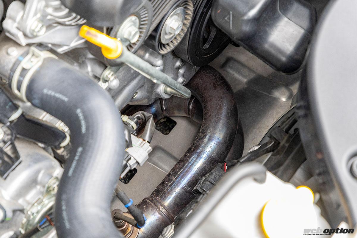 パワー系はノーマルエンジンのファインチューン仕様で、吸気をHKSコールドエアインテーク、排気もHKSのEXマニとマフラーを装着。ECUはECUTEKエディターによるオリジナルセッティングとなっている。