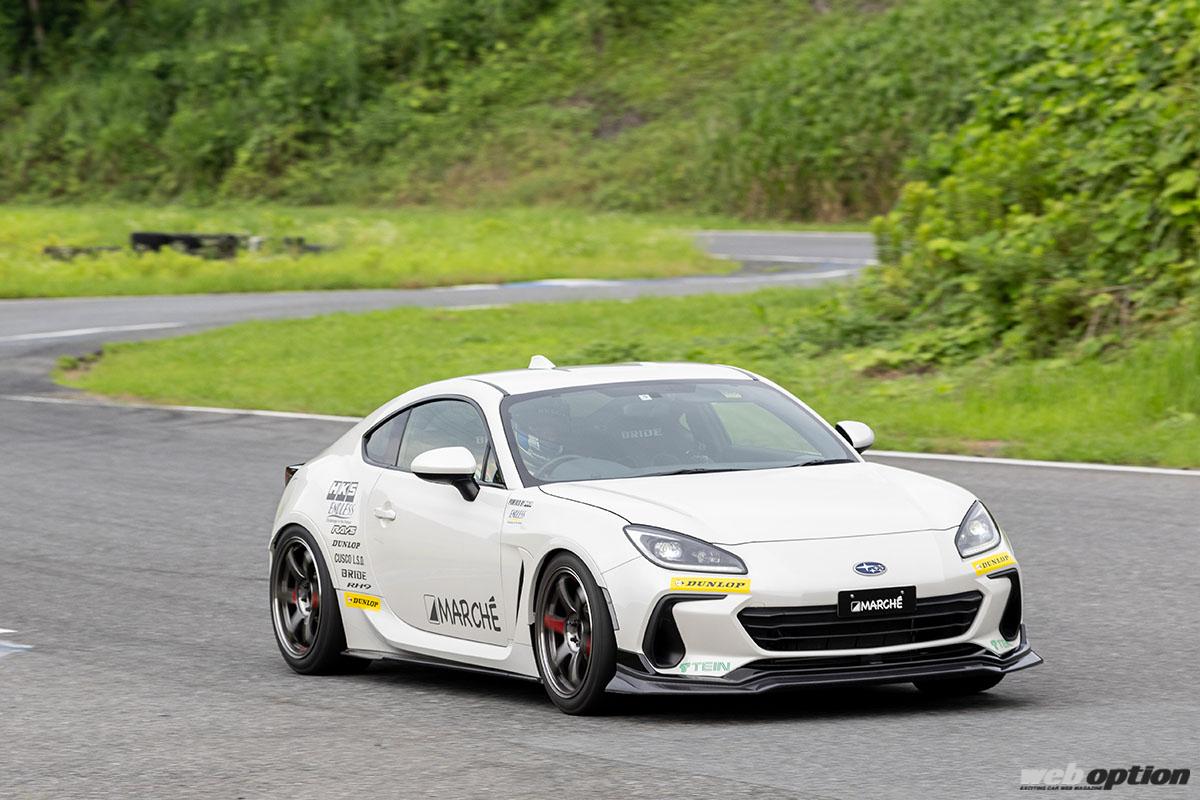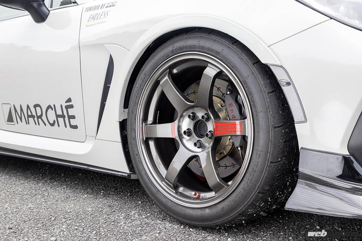 「現在の仕様はNAエンジンでの完成形といえるものです。ZD8は先代のZC6に比べてボディ剛性を始めとしてチューンベースとしてのポテンシャルが大幅にアップしていますので、それを最大限に生かしてどこでも安心して踏んでいけるようなセットアップを目指しています」と説明してくれたのは、マルシェの石田代表だ。