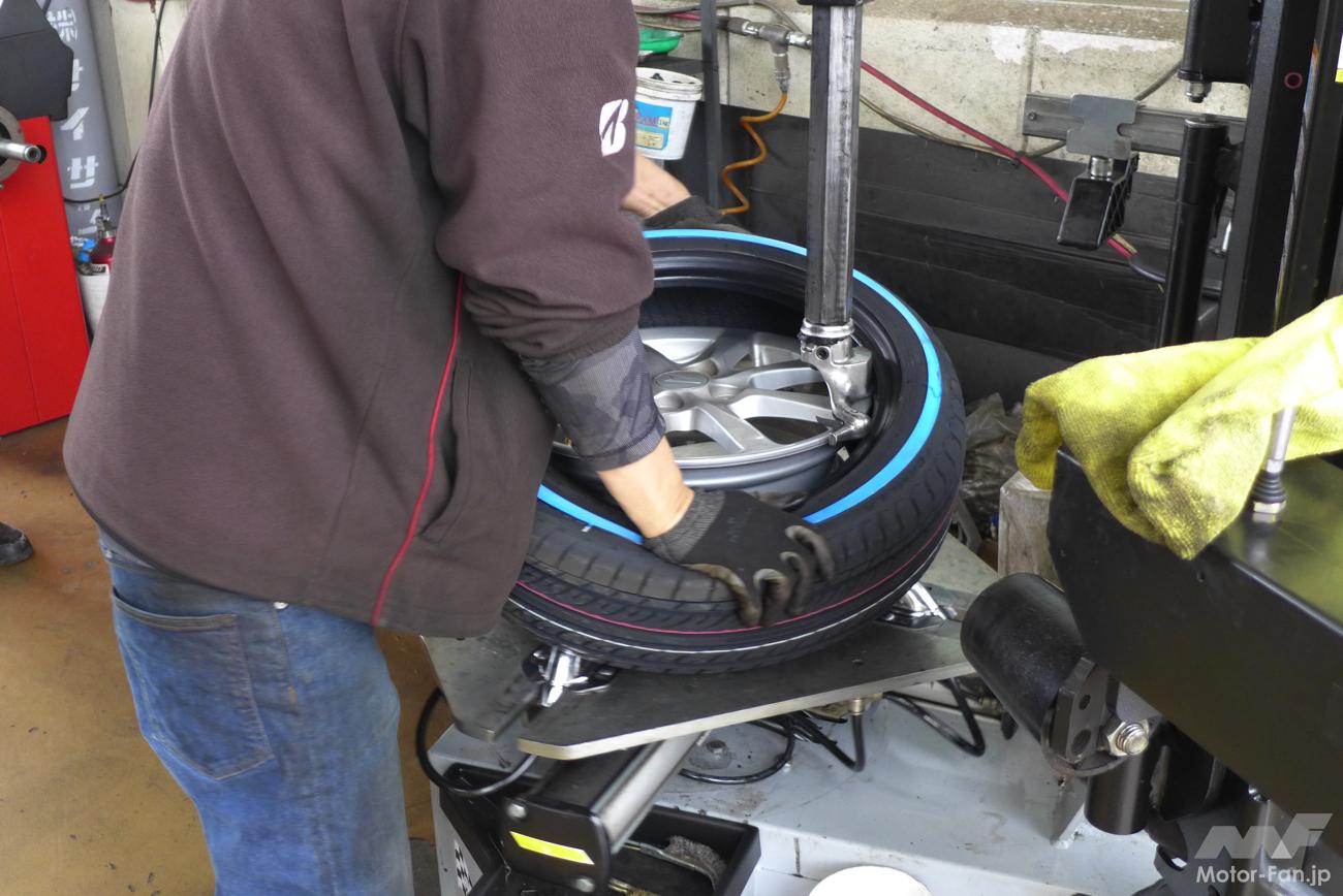 「ショルダー部の剛性が高いので、ホイールへの組み込む作業でちょっと力が入りますね。ただ作業しにくいというほどではありません。DIYでタイヤ交換をする人は少ないと思いますが、手組みするのはちょっと難しいかもしれませんね。どうぞタイヤ交換は私たちのようなプロに任せてください(笑)」