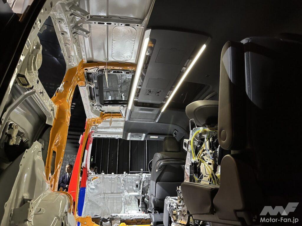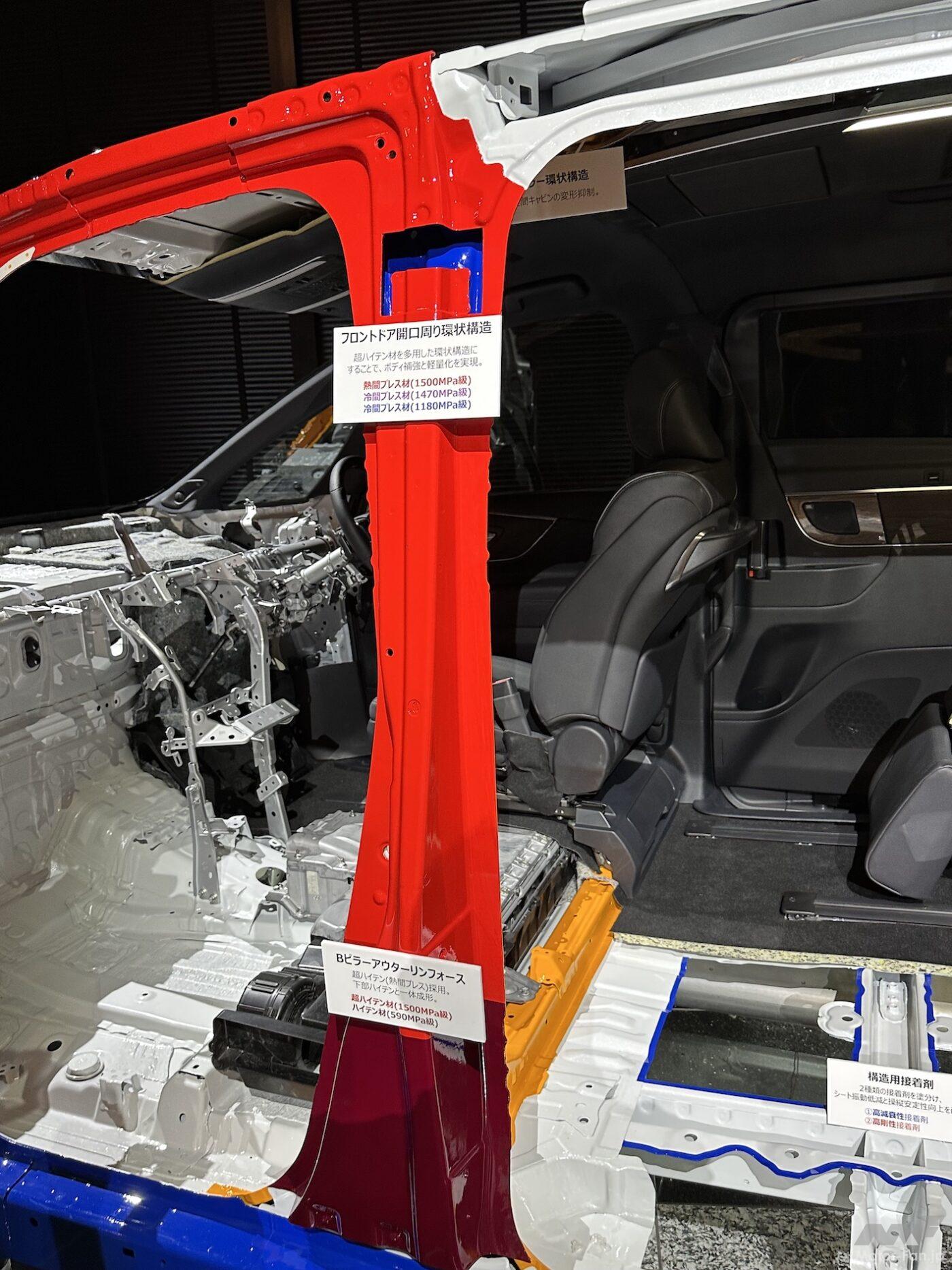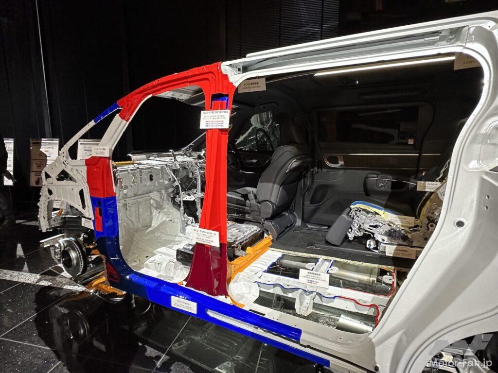 「ミニバンというと大開口がある。それを言い訳にしているところがありました」と吉岡氏は言った。大開口があるので剛性を高めるなど無理だ。だから、運動性能は良くなりっこないし、乗り心地だってそうだと。世の中にはオープンのスポーツカーがある。ミニバンは側面や後面に大きな開口部があり、オープンカーは上面に大きな開口部がある。じゃあ、オープンスポーツカーが大開口を理由に言い訳をしているかというと、ポルシェ・ボクスターやマツダ・ロードスターもそんなことはなく、スポーツカーを名乗るにふさわしい運動性能を実現している。そこに着目し、新型アルヴェルの設計では3つの具体策を施した。