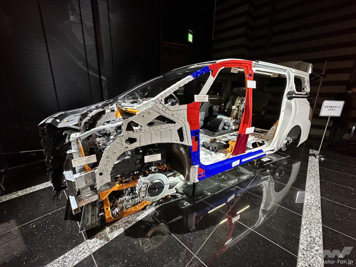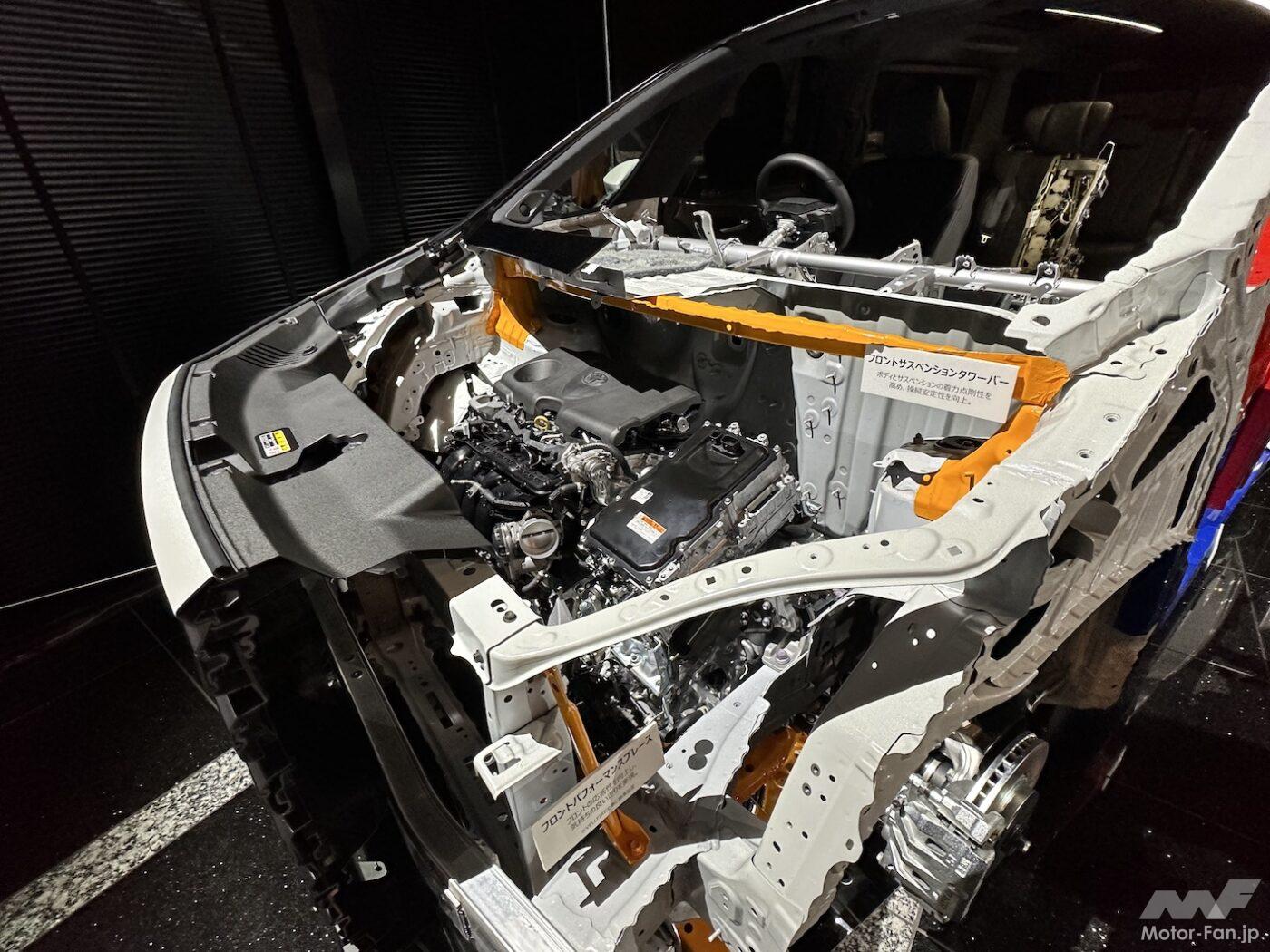 「ボディ剛性は従来比で50%向上させました」と、開発責任者の吉岡憲一氏は説明した。新型アルファード/ヴェルファイアの発表会場でのことである。「とくに着力点、フロントのサスタワーやリヤのホイールハウスについては30%向上させています」と付け加えた。