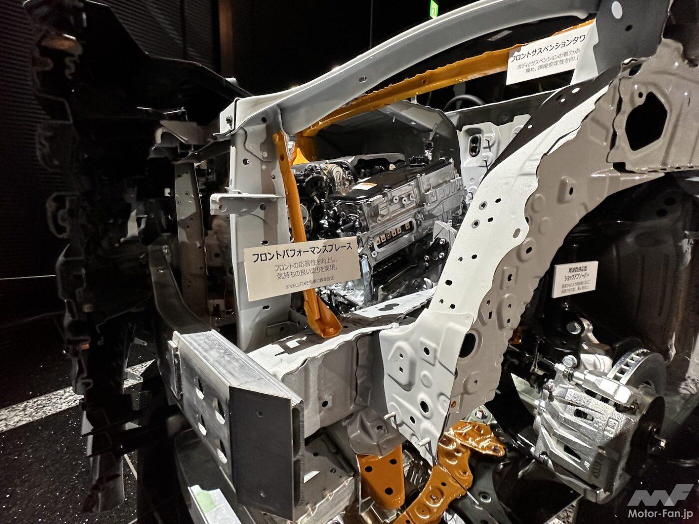 「ミニバンというと大開口がある。それを言い訳にしているところがありました」と吉岡氏は言った。大開口があるので剛性を高めるなど無理だ。だから、運動性能は良くなりっこないし、乗り心地だってそうだと。世の中にはオープンのスポーツカーがある。ミニバンは側面や後面に大きな開口部があり、オープンカーは上面に大きな開口部がある。じゃあ、オープンスポーツカーが大開口を理由に言い訳をしているかというと、ポルシェ・ボクスターやマツダ・ロードスターもそんなことはなく、スポーツカーを名乗るにふさわしい運動性能を実現している。そこに着目し、新型アルヴェルの設計では3つの具体策を施した。