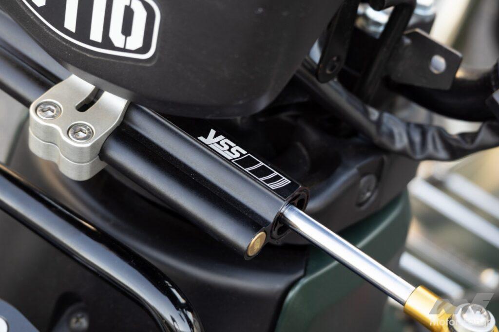 このキットはYSS製30段調整式ダンパーと、高品質な削り出しブラケットを組み合わせたボルトオン仕様。走行時のハンドルのブレを抑制し、安心感を向上させるとともに、その高い品質で存在感を遺憾なくアピール。カスタム度に優れたフロント周りに仕上げてくれる。