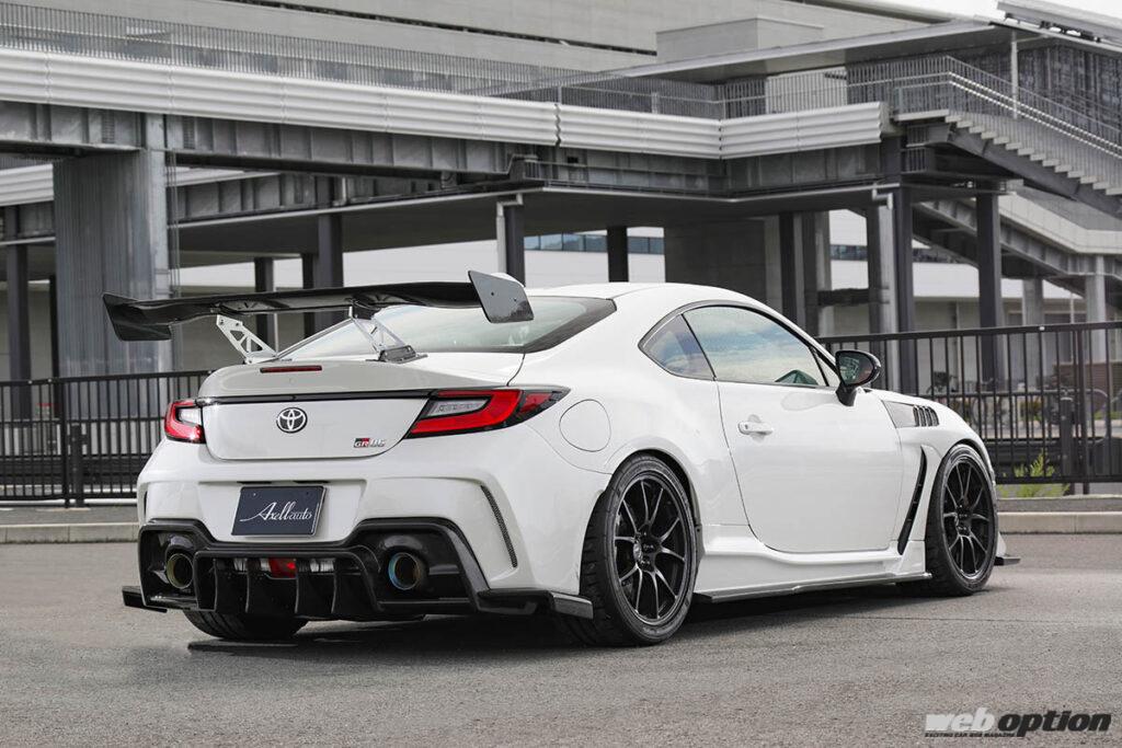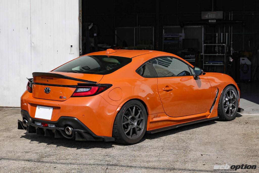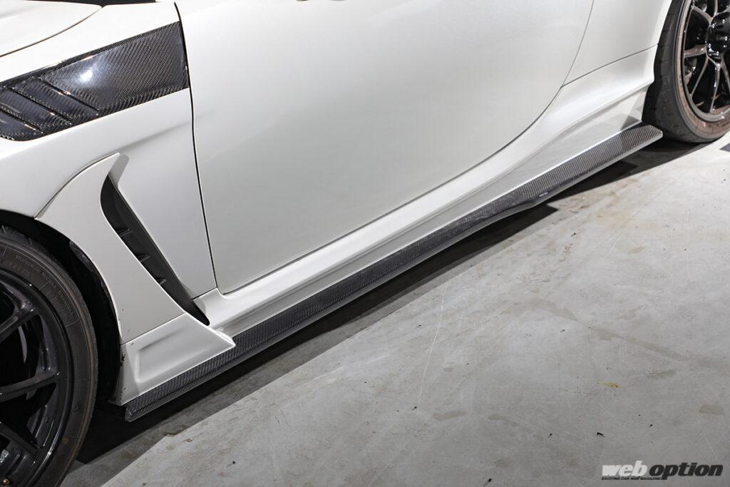 サイドステップ(FRP:7万9200円/カーボン:10万7800円)に関しては、ステップの高さを極端に変えることなくリヤ側に視線を誘導するプレスラインでイメージを一新。過剰なデザイン性を求めるのではなく、GR86/BRZのフォルムに合わせ性能を引き出すための最善の形状となる。